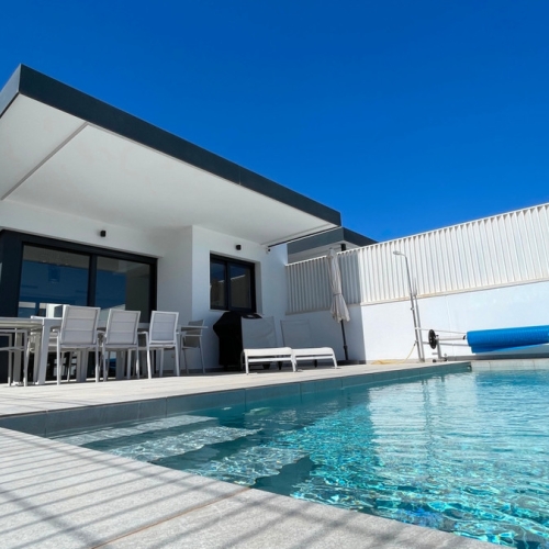 EXCLUSIVE "READY TO MOVE IN" modern and stylish 3 bed, 3 en-suite bathrooms FULLY FURNISHED DETACHED LUXURY VILLA, located in the quiet location of SAN MIGUEL DE SALINAS but only 3km away from the main village with plenty of amenities and within 10km of the vibrant commercial centres, shopping malls, golf courses and the crystal clear beaches of the Orihuela Costa!