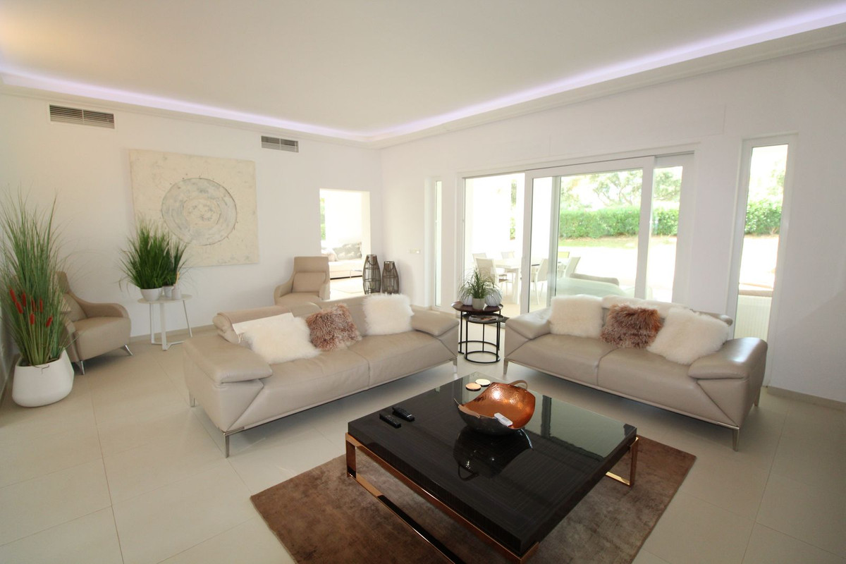 Stunning detached villa located in the prestigious urbanization of San Roque Club. Situated in a frontline golf position, this remarkable property offers captivating views of the manicured golf course.. Meticulously renovated with a keen eye for elegance and top-quality finishes, this villa boasts a truly luxurious interior.