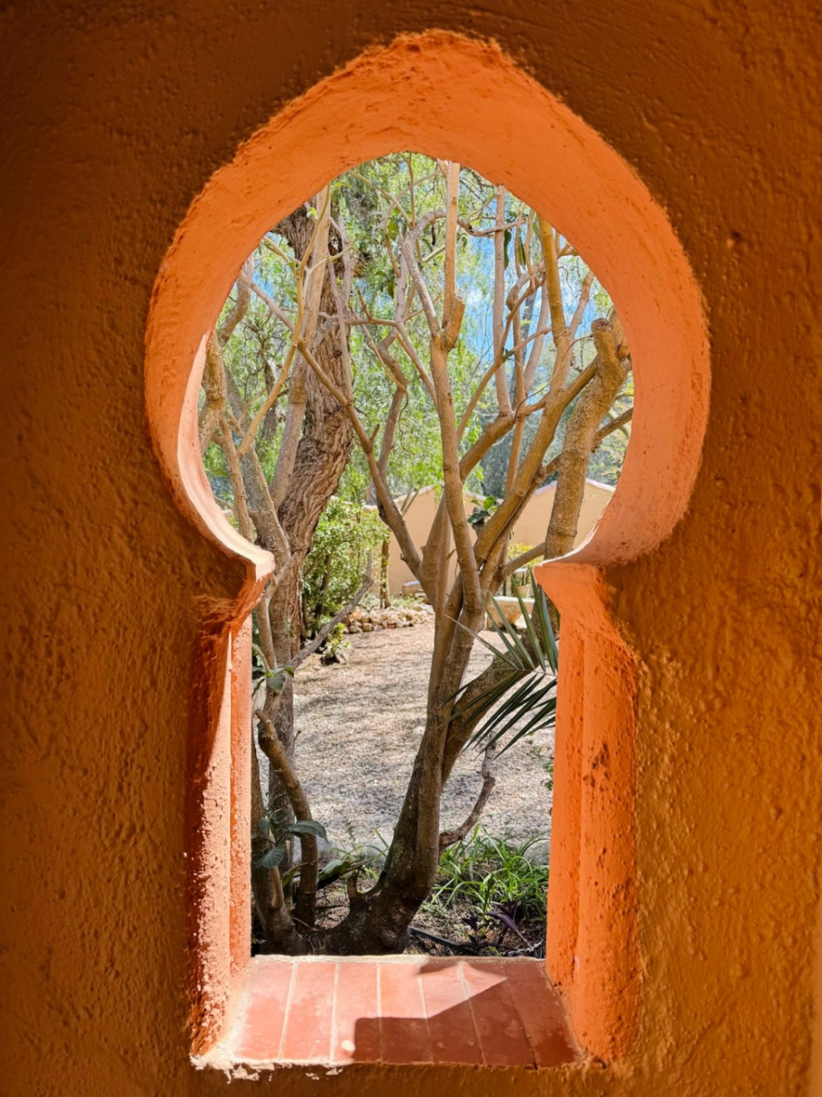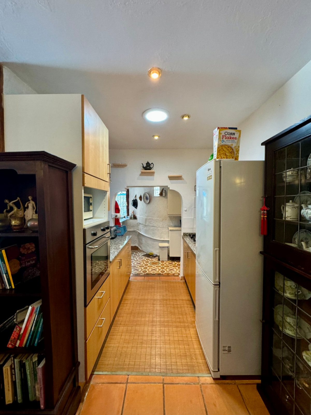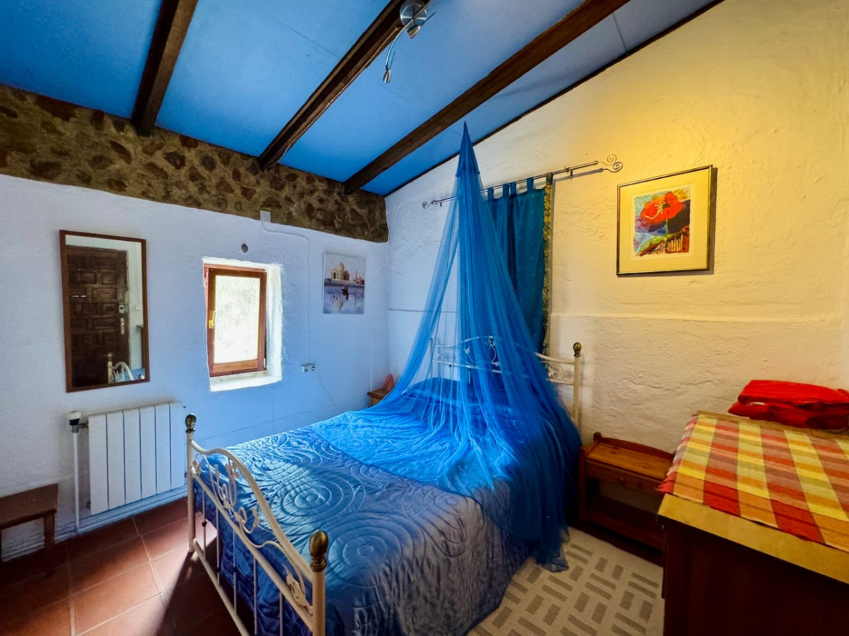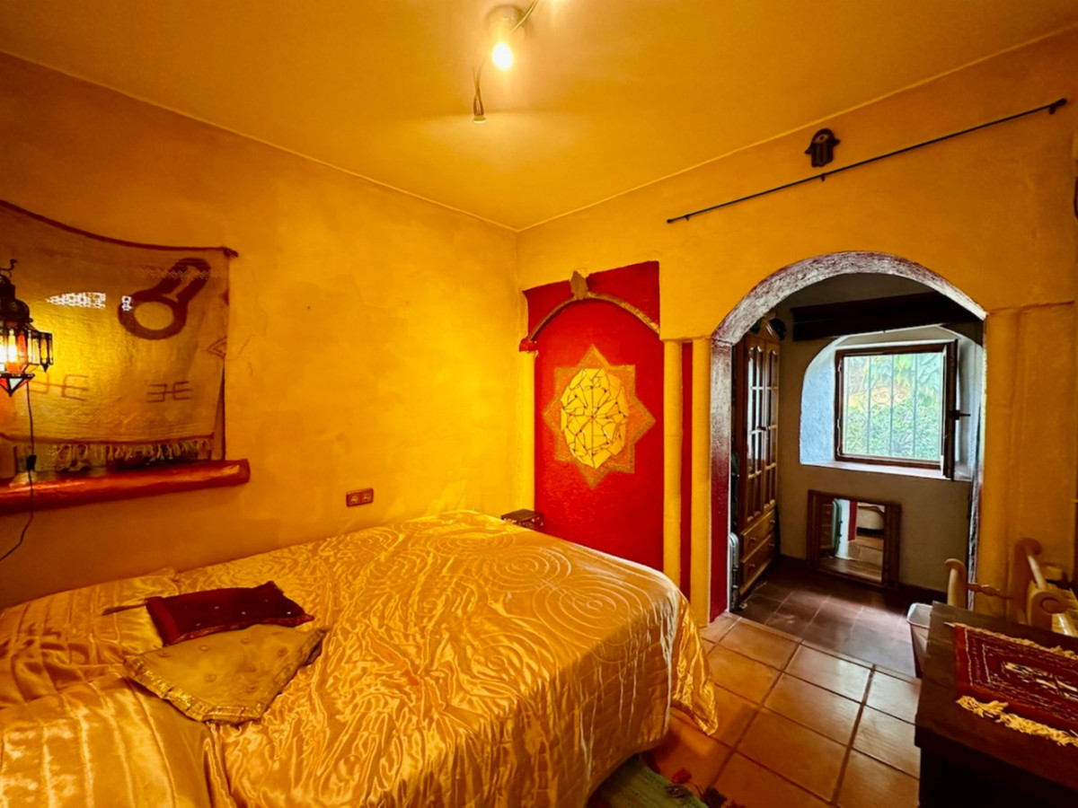 Opening the front door of the main house, you walk into the artist's room with fantastic views of Montgo. Adjacent is an open living area with study corner, Arabic details and a fireplace cassette. A unique open kitchen with laundry room leads to a seperate dining room with access to the beautiful garden. There are 2 double bedrooms with dressing room and 1 family bathroom with shower in the main house.