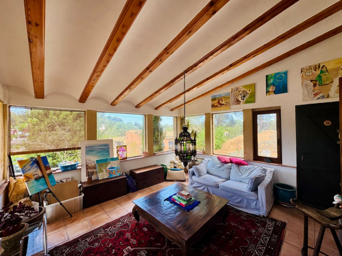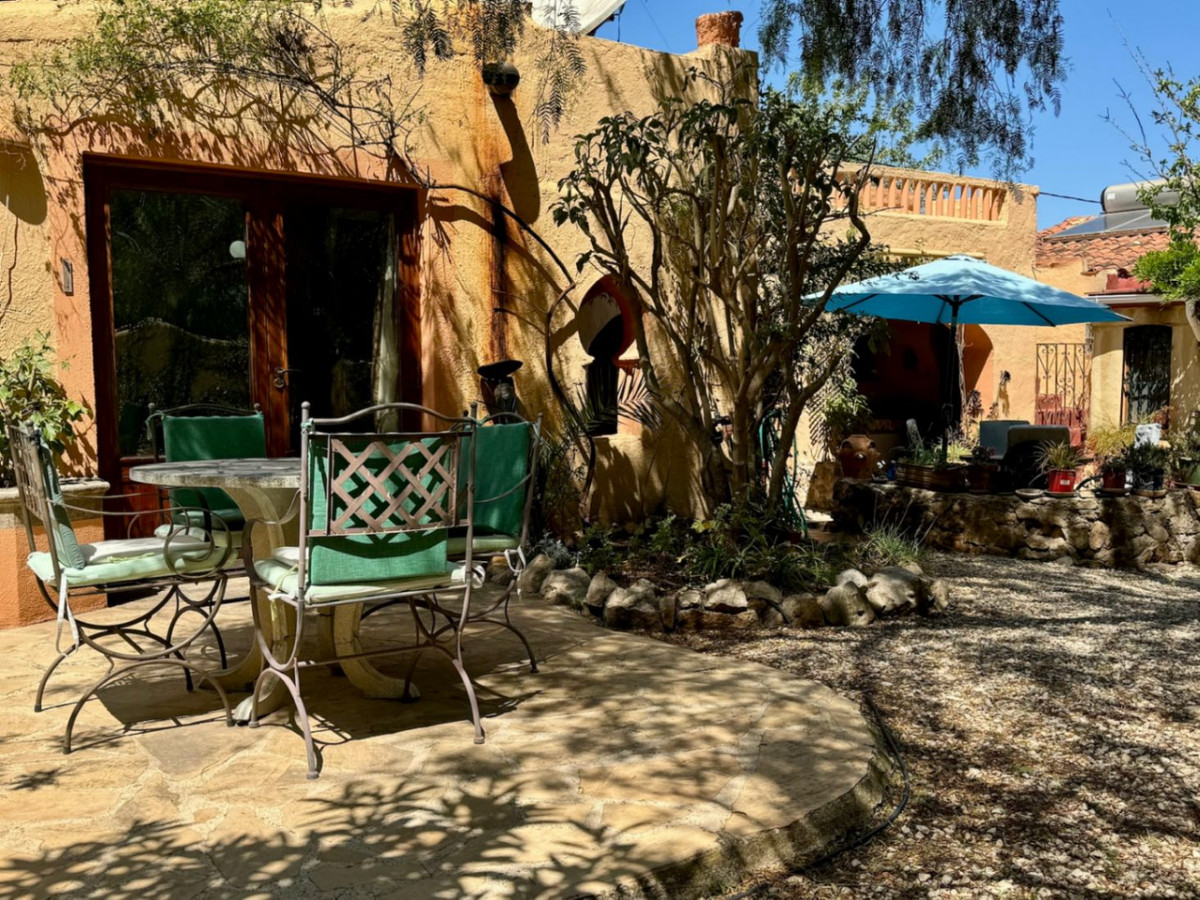 In the middle of the Montgo natural park we find this authentic Mediterranean villa with potential. Guaranteed green area where new construction is not allowed, quiet location yet only 8 minutes from the bustling center of Javea. Through an electric sliding gate you enter the property with carport, parking space for 4 cars and direct access to a small casita, used as an art studio for the moment. Both the house and the guest house have private entrance doors.