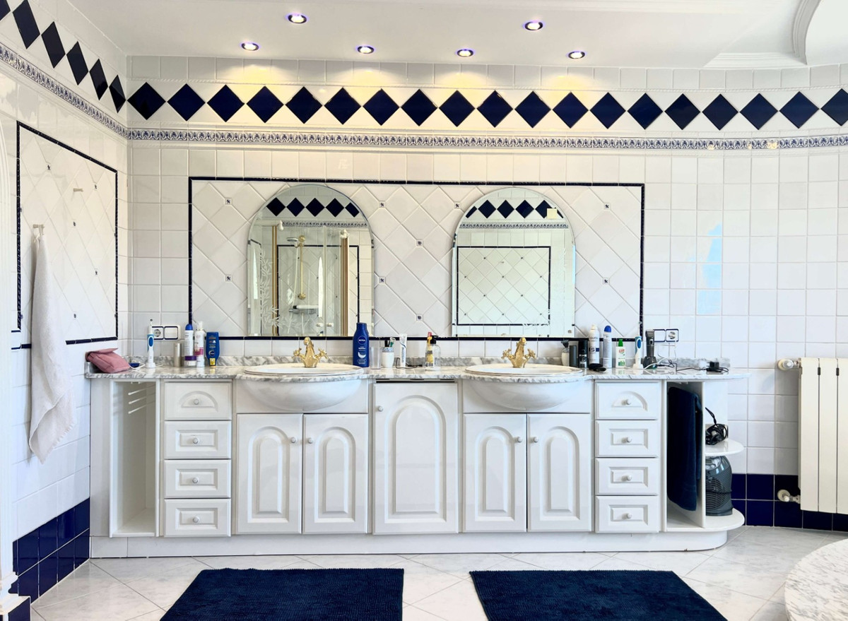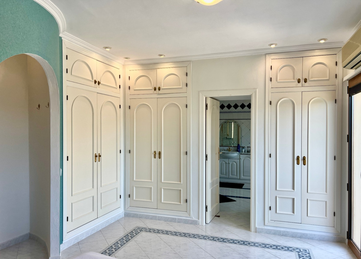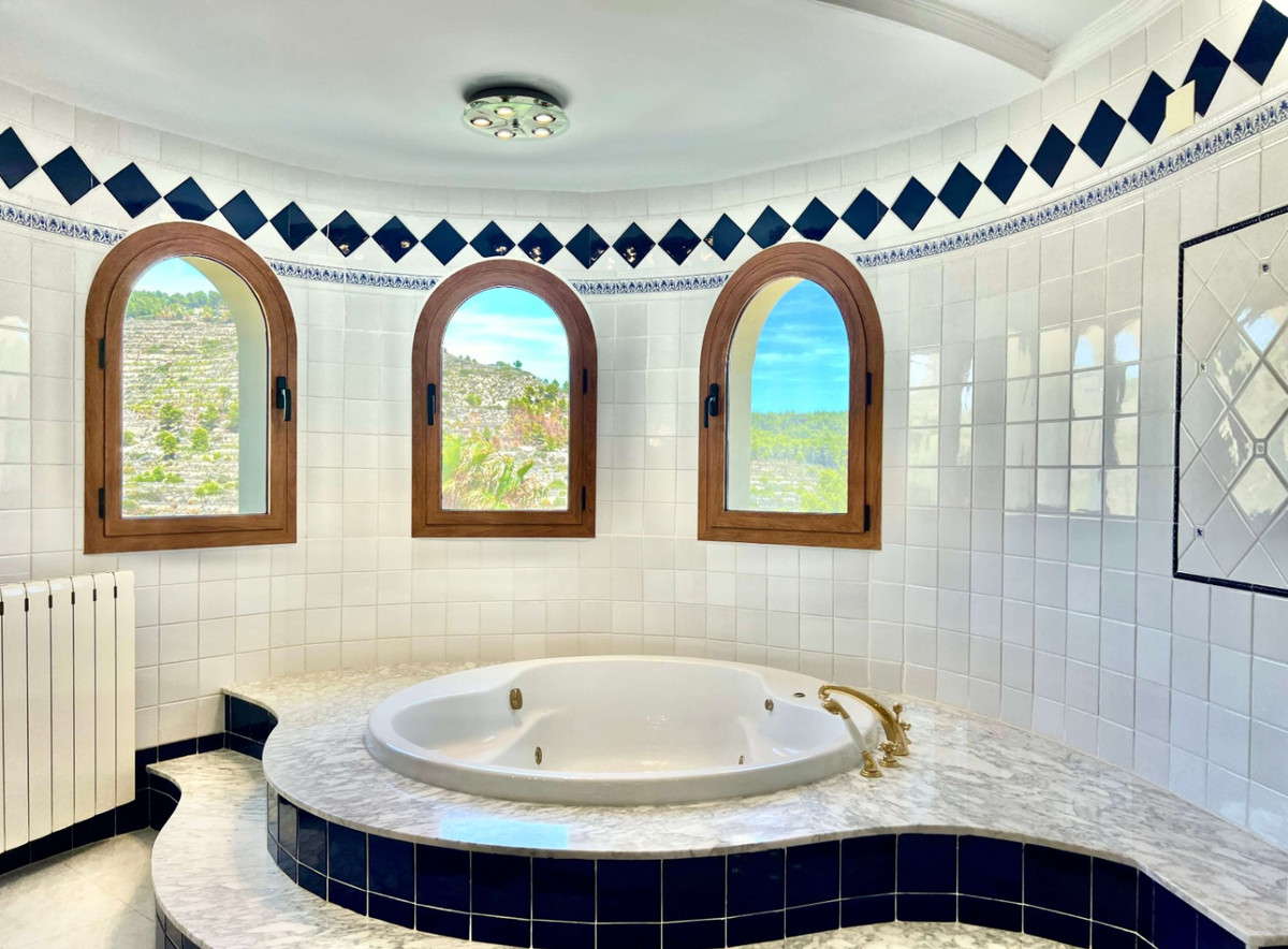 On the edge of a protected nature reserve, in an oasis of tranquility and with delightful views, you will find this villa in traditional Spanish style. The property consists of 2 levels and can be perfectly used as 2 separate living units. You can access the villa through the automatic sliding gate or the separate pedestrian entrance. The entrance features a spacious hallway, where the beautiful arches of the stairwell immediately catch the eye. From the entrance, there is direct access to the living area and the kitchen on one side, and the sleeping area on the other. The master bedroom, with its dressing area, has an en-suite bathroom. This luxurious bathroom is equipped with a large jacuzzi and offers a wonderful view of nature. Additionally, there is a second bedroom and bathroom. From the spacious and bright living room, divided into a dining room and lounge with a fireplace, you already have a view of the famous Ifach of Calpe! On this side of the villa, there is also the covered terrace and the swimming pool, surrounded by tropical plants and equipped with an outdoor shower and relaxation area. The lower level, accessible via an outdoor or indoor staircase, enjoys the expansive terrace, private garden, and laundry and storage spaces, and includes the separate apartment. This features a sitting area, open kitchen, two bedrooms, and two bathrooms. There is a private entrance, and the apartment can also be closed off from the upper floor. Even from here, you can enjoy privacy and views! A lot of attention has been paid to quality and energy saving. For instance, the outdoor terrace has been re-tiled. Thanks to the solar boiler, the property is extremely economical in consumption. In other words: this delightful villa is ready to move into and enjoy peace and sunshine.