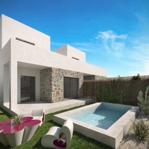 With large plots, the villas have 3 beds, and 2/4 baths, with a spacious bright lounge, a modern kitchen and a spectacular garden with a private swimming pool in the sunny garden. The villas will be built with high quality standards, using the best materials, including pre-installation of ducted air conditioning, and all top quality finishes.