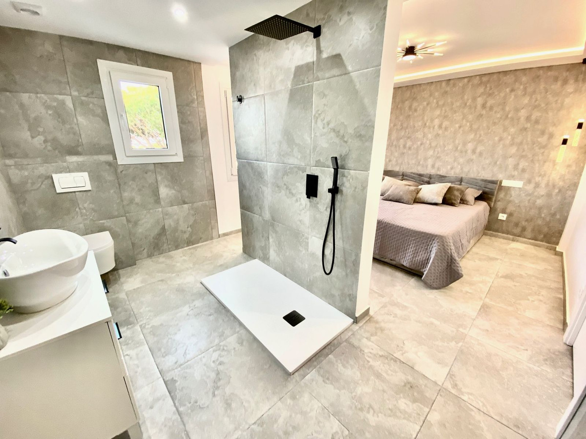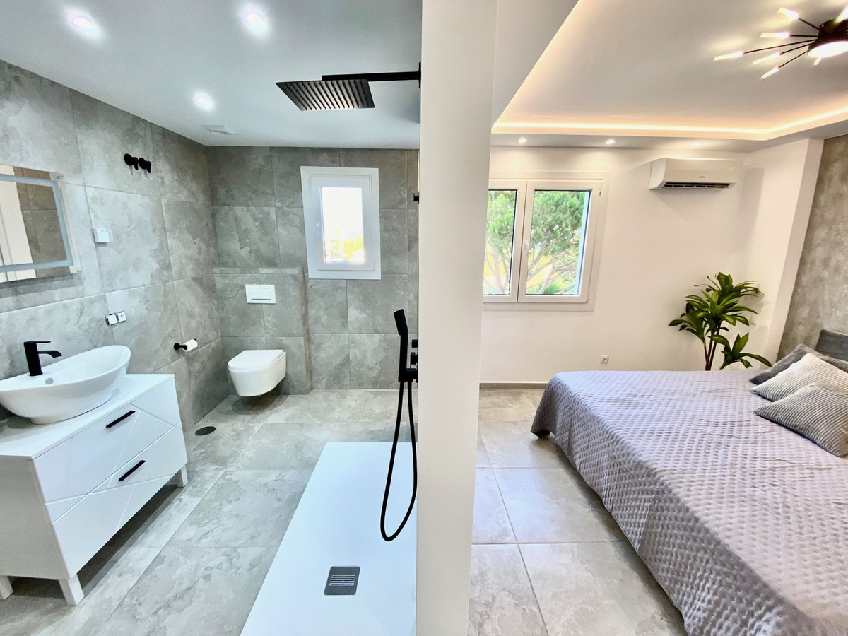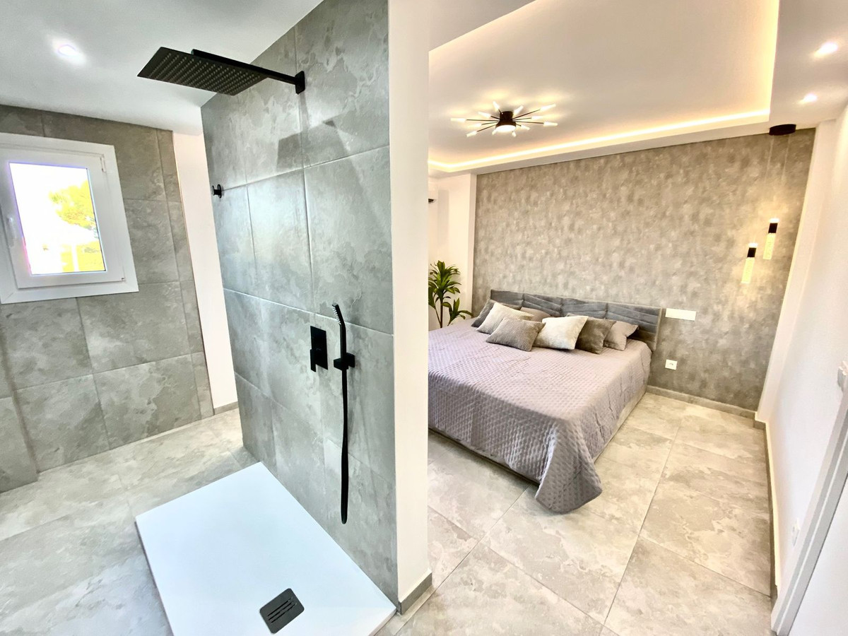 Apartment that has just been renovated with new furniture has 3 bedrooms, 2 of them with sea views, 2 bathrooms, one en-suite, living room with open kitchen that faces the kitchen part to the west with views of the sea, garden and pool and Another part where this terrace with barbecue faces east with views of the sea as well.