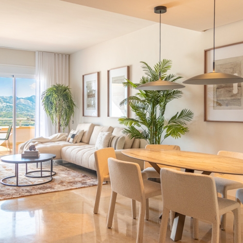 Discover this exceptionally bright middle-floor apartment featuring 2 bedrooms and 2 bathrooms, complete with an expansive terrace and panoramic views. Ideally situated within walking distance of the La Cala Golf Clubhouse and its facilities, this property offers both convenience and luxury.