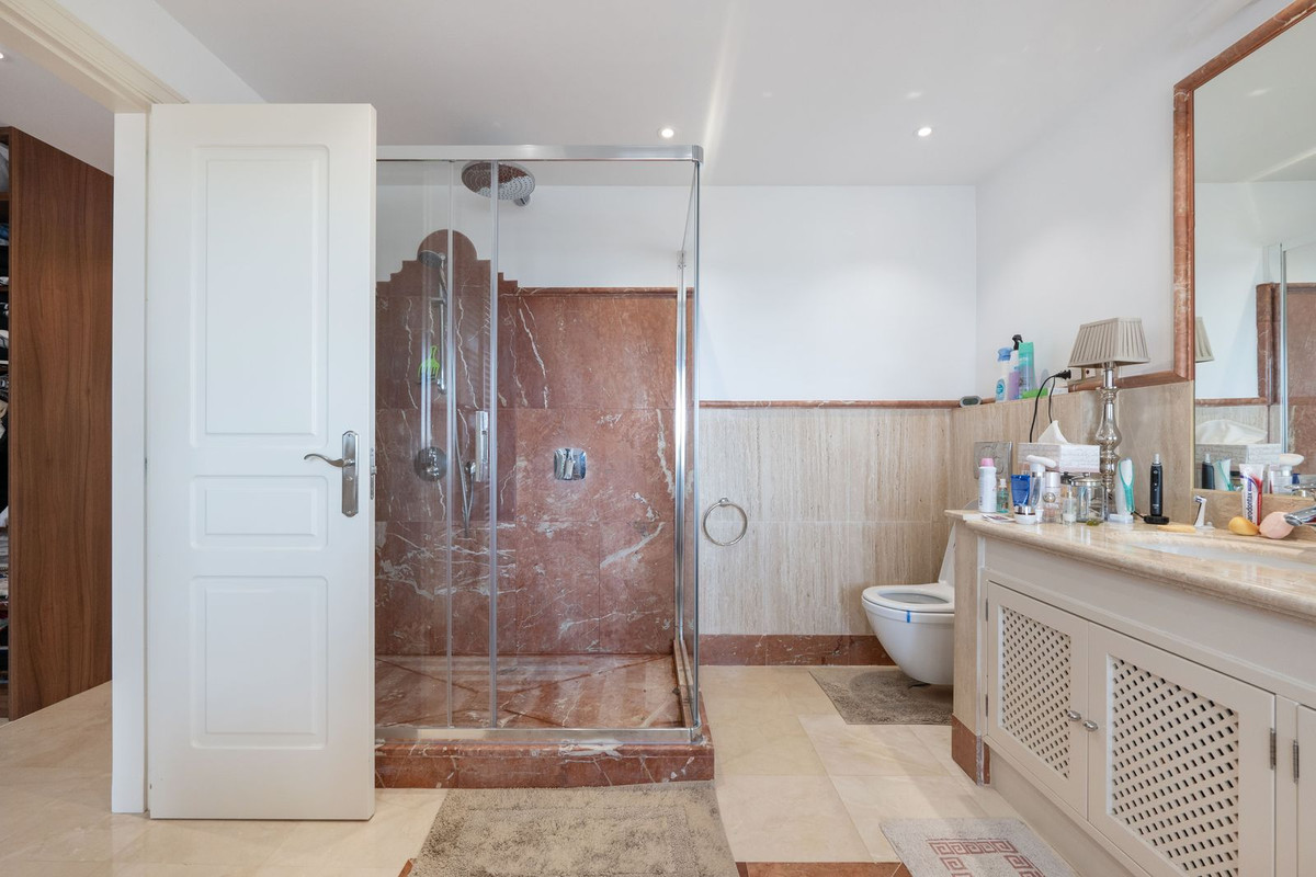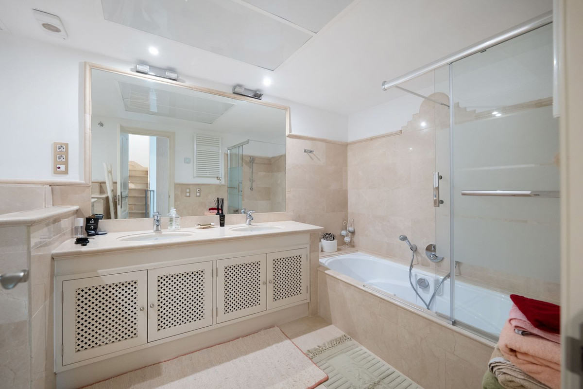The townhouse includes a total of four bedrooms. Two bedrooms are located on the first floor, and two are in the basement. The master bedroom on the first floor boasts its own walk-in closet and en-suite bathroom. The adjacent bedroom also has its own bathroom. Both bedrooms offer stunning views of the sea and mountains.