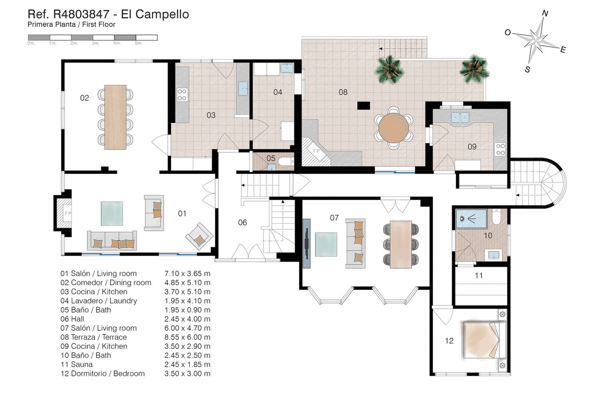 Accessed via a residential road, with close proximity to the N-332 national road, the villa is just 5 minutes by car from the Alicante-Valencia motorway, providing excellent transport links. The approach to the property's elegant façade is via an automated entrance gate which opens up onto a grand driveway.