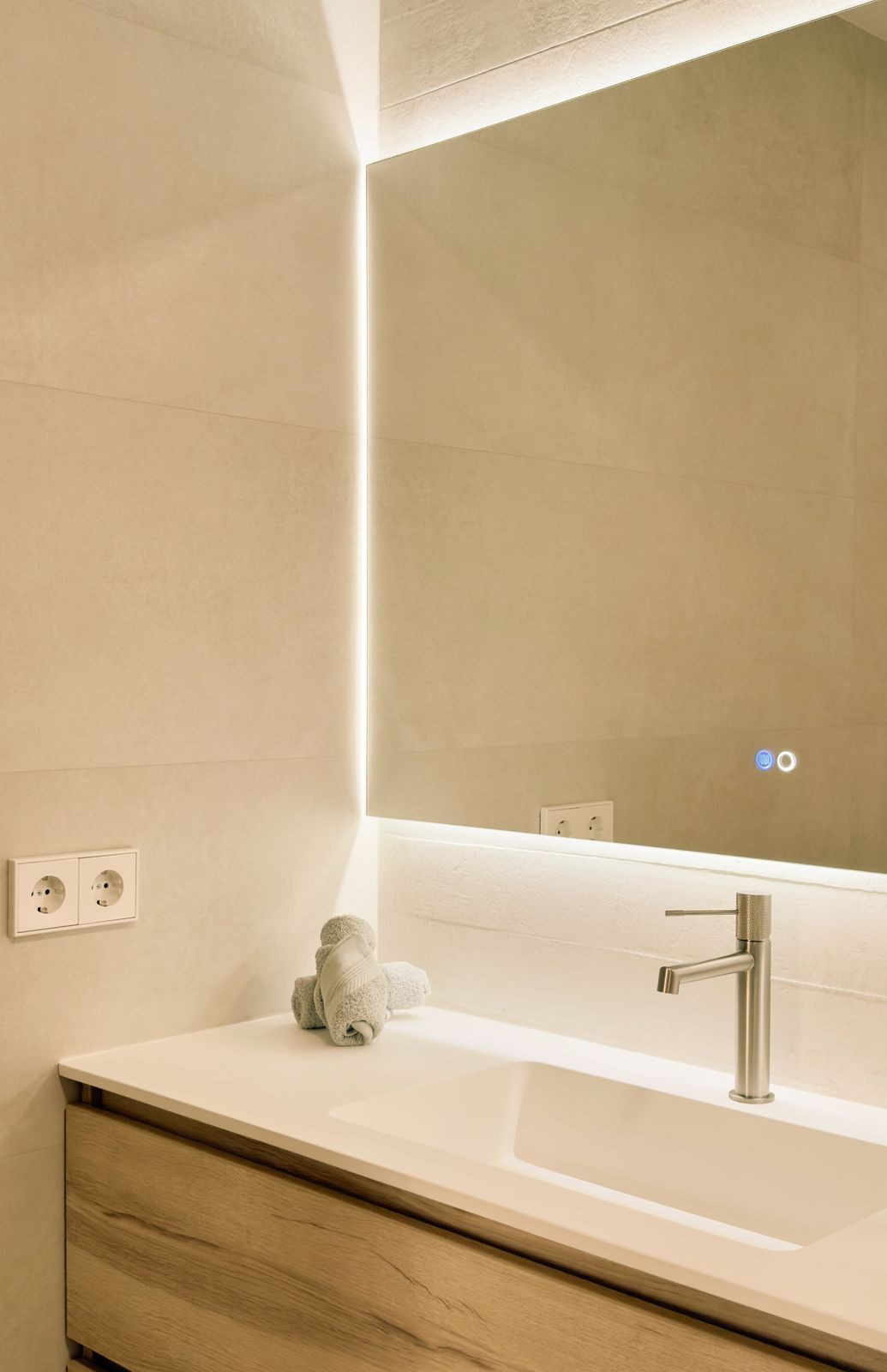 Upstairs there are 3 bedrooms: the master ensuite and the other 2 bedrooms that share a bathroom with a shower. There is a small west facing terrace from the 2 bedrooms. The third bedroom has access up to the spacious solarium with 360 degree views.