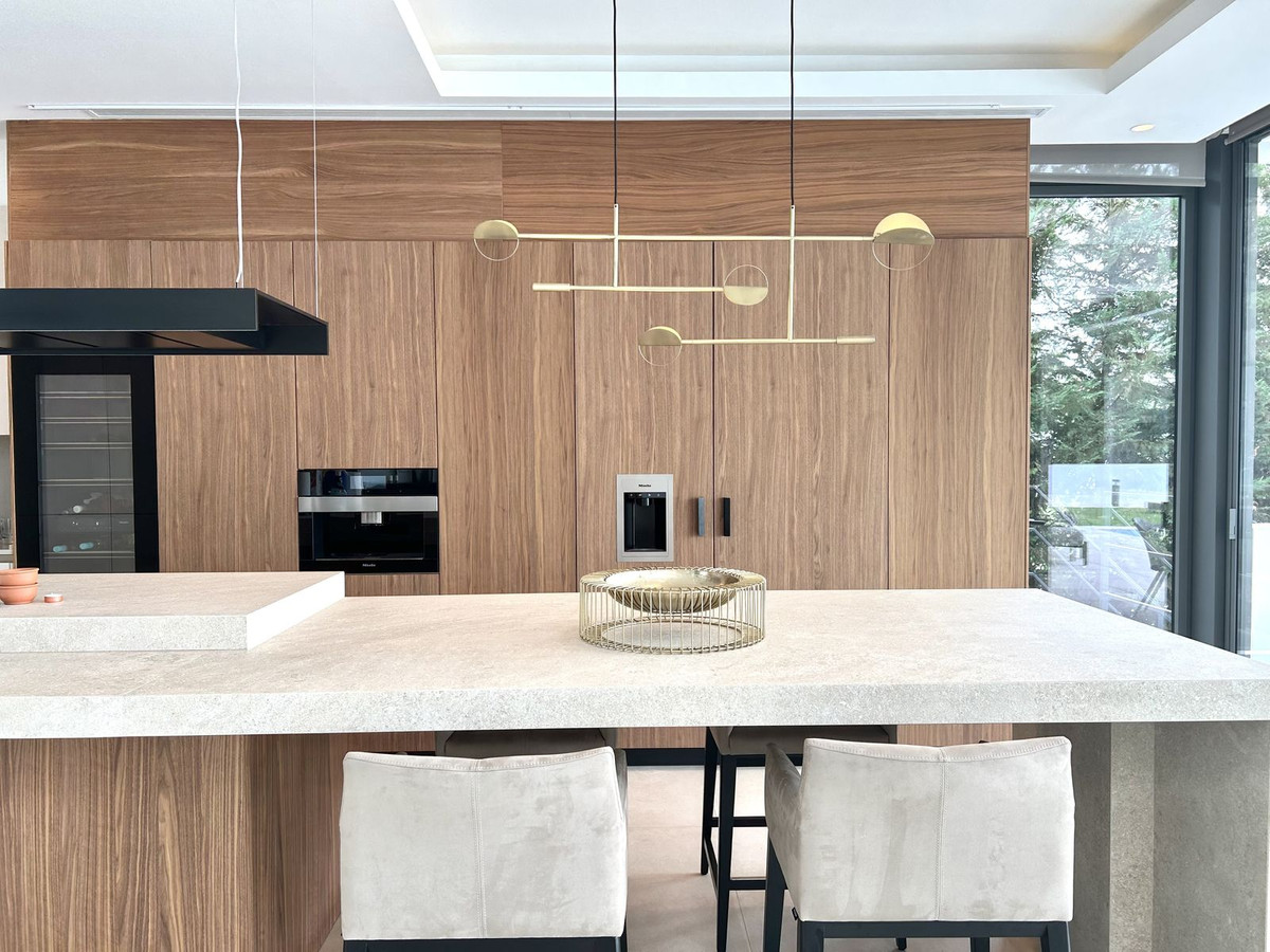 The villa is designed for ultimate comfort and entertainment. It offers seven luxurious bedrooms, each with its own ensuite bathroom, providing complete privacy and convenience. Additionally, there are guest toilets on both the ground floor and in the basement. The expanded kitchen is a chef's dream, featuring a large island, an additional American-sized refrigerator and freezer, a large glass chiller, a hidden cooktop, and all Miele appliances.
