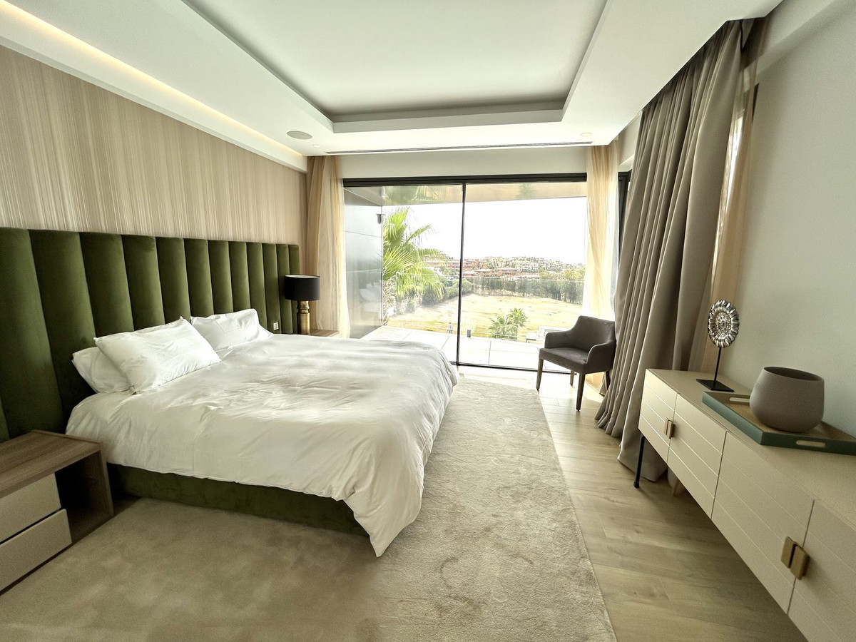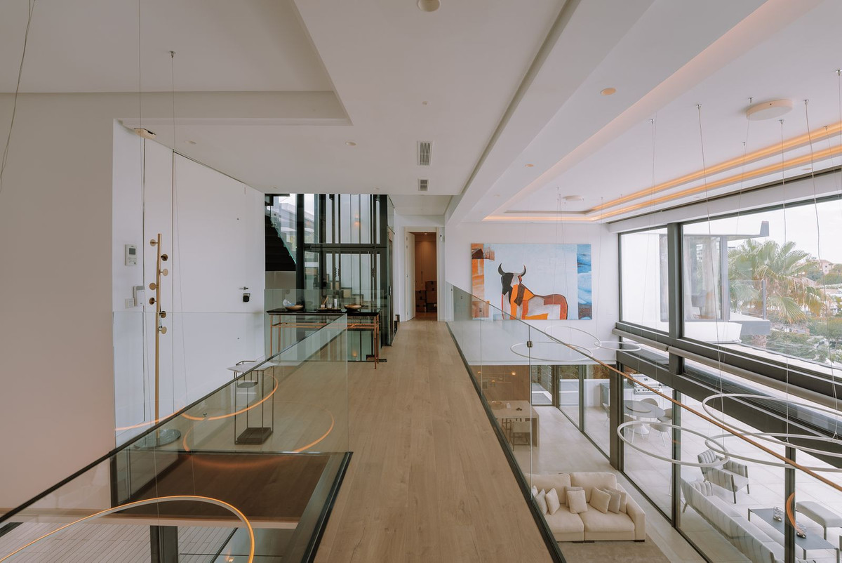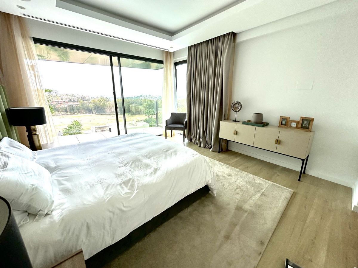 Nestled in a prime location, this exceptional property embodies modern luxury, harmoniously blending with the unique topography of its 1,439 m² plot. The villa's privileged position on the hillside offers breathtaking views of the lush golf courses in the valley, the majestic Andalusian mountains, and the sparkling Mediterranean Sea, extending all the way to the African coast and Gibraltar. Simply stunning!