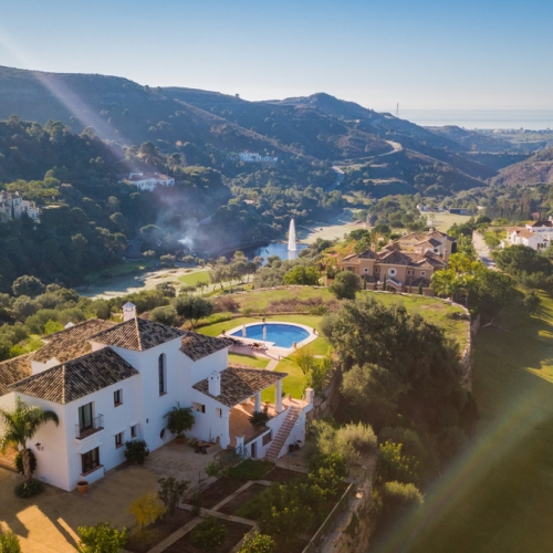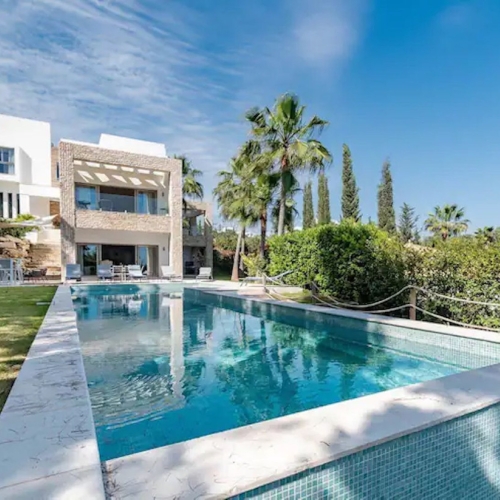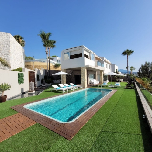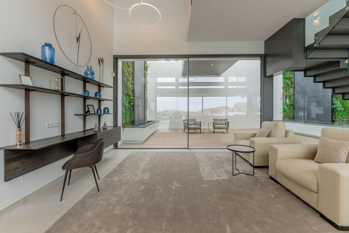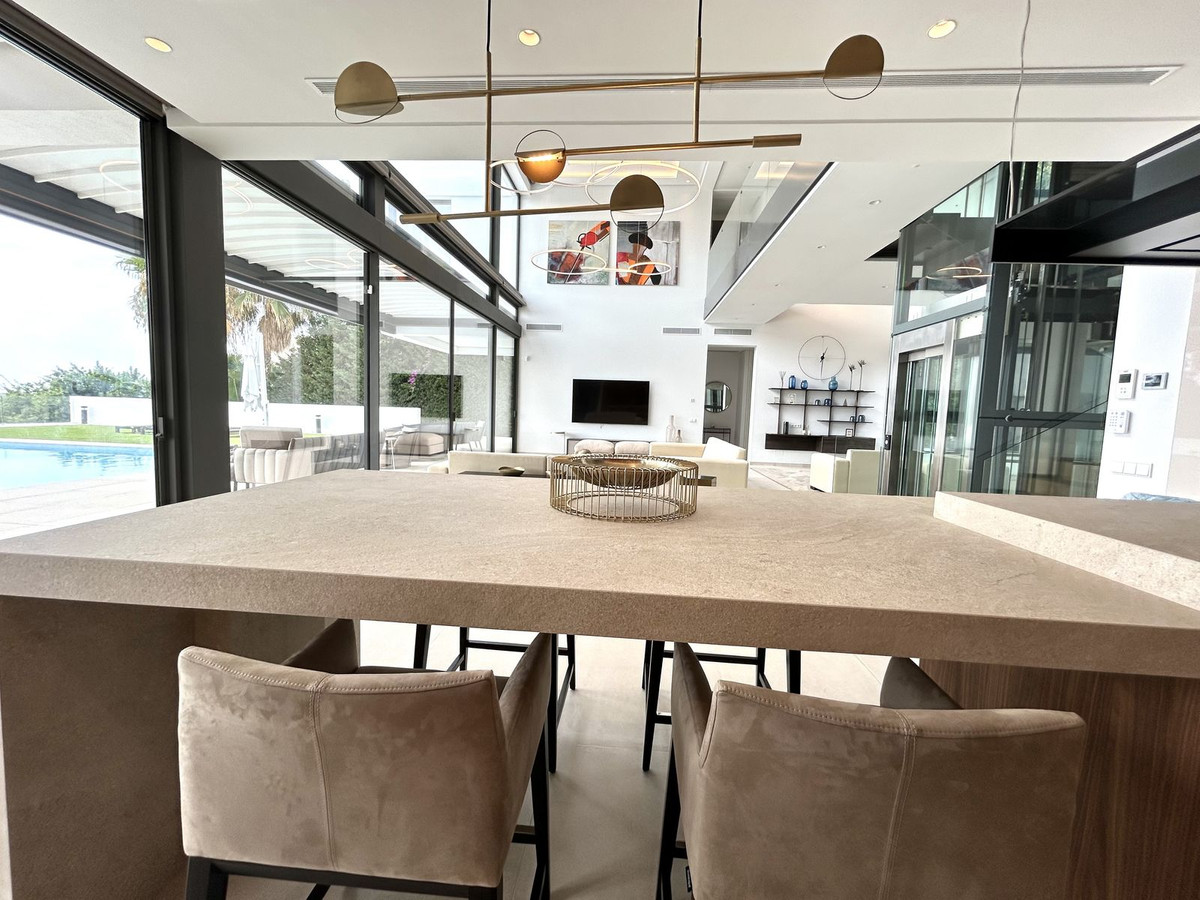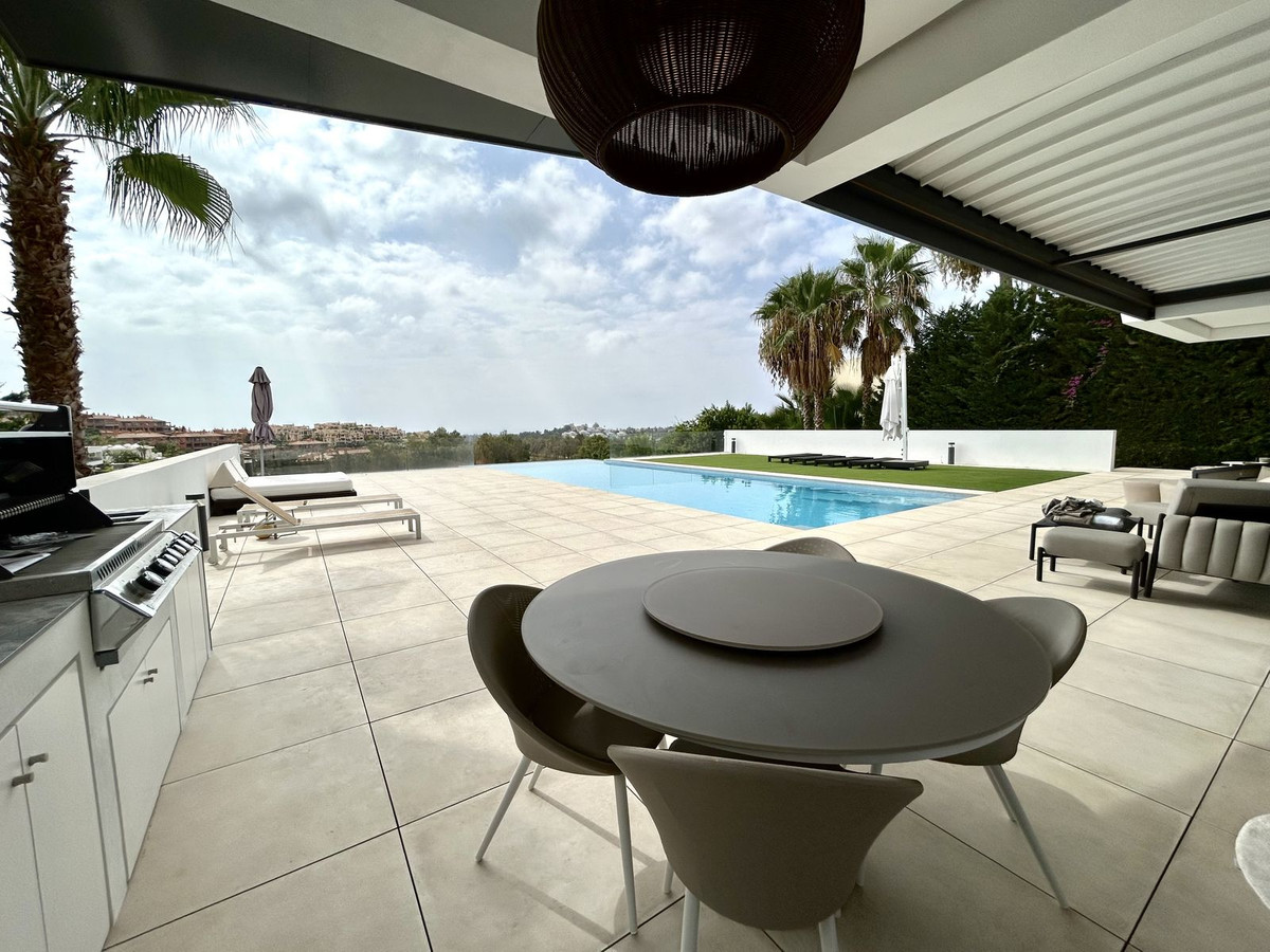 Nestled in a prime location, this exceptional property embodies modern luxury, harmoniously blending with the unique topography of its 1,439 m² plot. The villa's privileged position on the hillside offers breathtaking views of the lush golf courses in the valley, the majestic Andalusian mountains, and the sparkling Mediterranean Sea, extending all the way to the African coast and Gibraltar. Simply stunning!