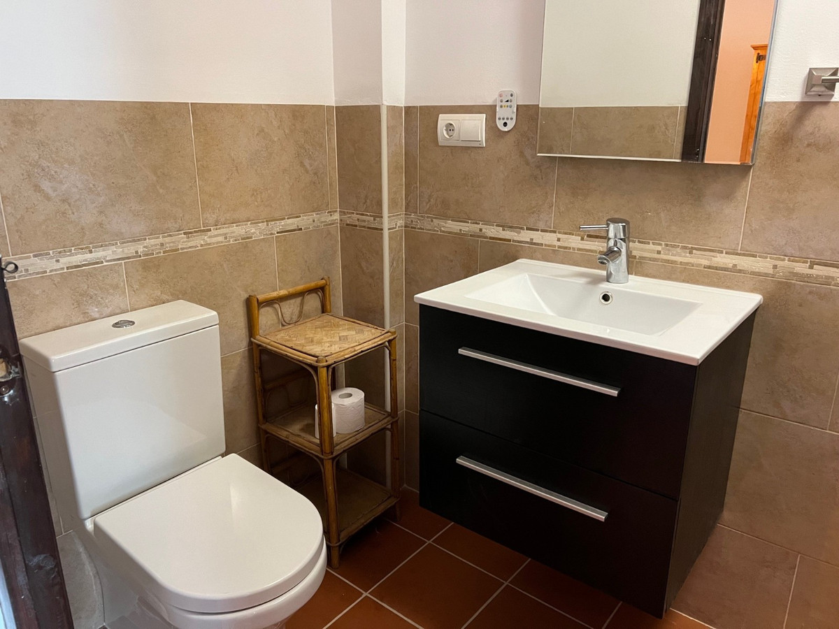 The villa has 5 bedrooms and 4 bathrooms, 1 separate toilet and open kitchen and a cosy living room.The bedrooms and bathrooms are distributed over 3 floors. Also there are several terraces with mountain views on the diferent floors and a partially covered swimming pool at the down terrace.