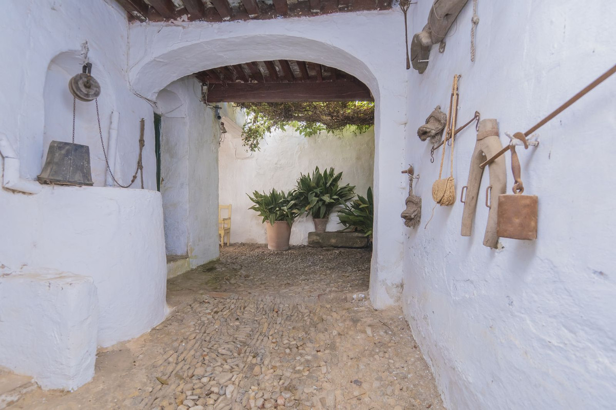 Estately House in the heart of Ronda Old Town. This is a dwelling with access from two different streets, one of them the main artery at Ronda Old Town, the second one, a cobbled XVIII century scented street with whitewashed façades, next to charming hotels, lordly homes currently open to the public as part of Ronda cultural offer, little churches, convents, its renowned Colegiata Santa María la Mayor, the town hall square and the plethora of magic spots such as hidden squares or narrow alleys the backbone of Ronda Old Town is made of, passageways that lead us to unexpected views of the gorge and the impressive surroundings. The property is in need of a thorough renovation, this scenario, notwithstanding, instead of meaning a problem, opens the premises either to a renovation aimed to build an ideal home in an unbeatable location or to seize its extension and building capability to build a lodging in line with the boutique hotels that currently are the signature of the hotel industry in Ronda. A lovely and ample yard welcomes you after the entrance, with two utility rooms at the sides, stables, garden and well, kitchen and two living rooms, a bedroom and the entry hall of the second entrance, the one facing Old Town main road. The access to the first floor can be done through the main stairs starting from one of the living rooms or a second staircase starting from the interior yard. On the first floor, the rest of the bedrooms, living room with access to the terrace and other rooms. With over 250.000 visitors yearly, the historic and monumental heritage, its significance as the cradle of the tauromachy, destination of distinguished culture, science and art personalities, Ronda combines tradition and trendiness joining absolute first class restoration and lodging, with the museum, cultural and natural offer, boasting a National Park along two Biosphere reserves in the immediate surroundings.