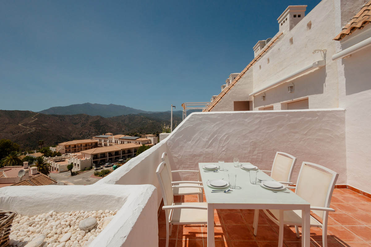 Luxury duplex penthouse distributed over two levels with capacity for up to 4 people, strategically located close to the highlights of Marbella. With 90 m² of interiors and 55 m² of south facing terraces, it enjoys incredible panoramic views of the Mediterranean Sea, the Lake of Istan and the majestic mountains. Its private jacuzzi on the upper terrace guarantees unique moments of relaxation and disconnection.