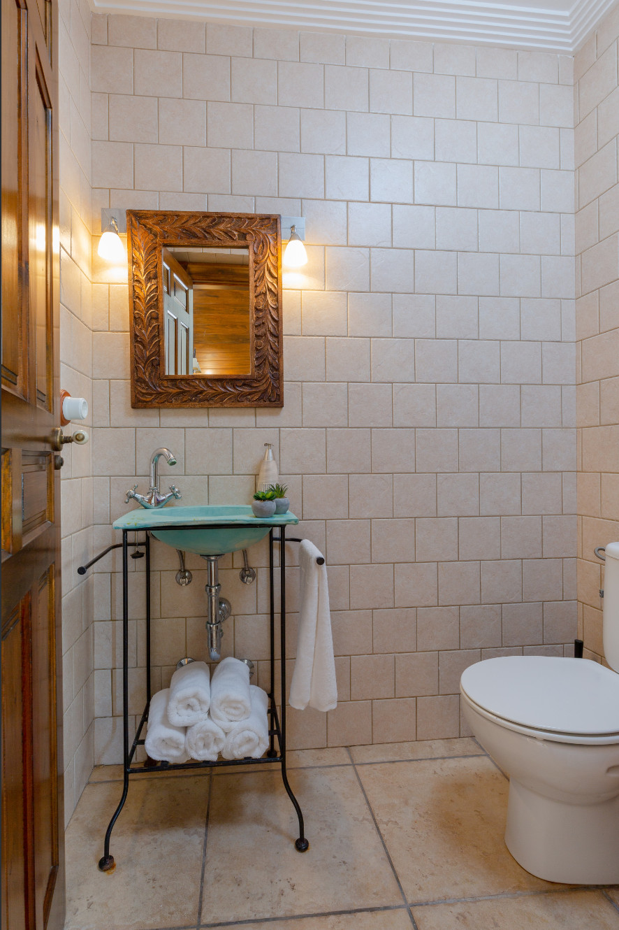 Main House: 4 bedrooms (2 with en-suite bathrooms), additional bathroom and guest toilet, lounge, dining area, fully equipped kitchen, and laundry room.