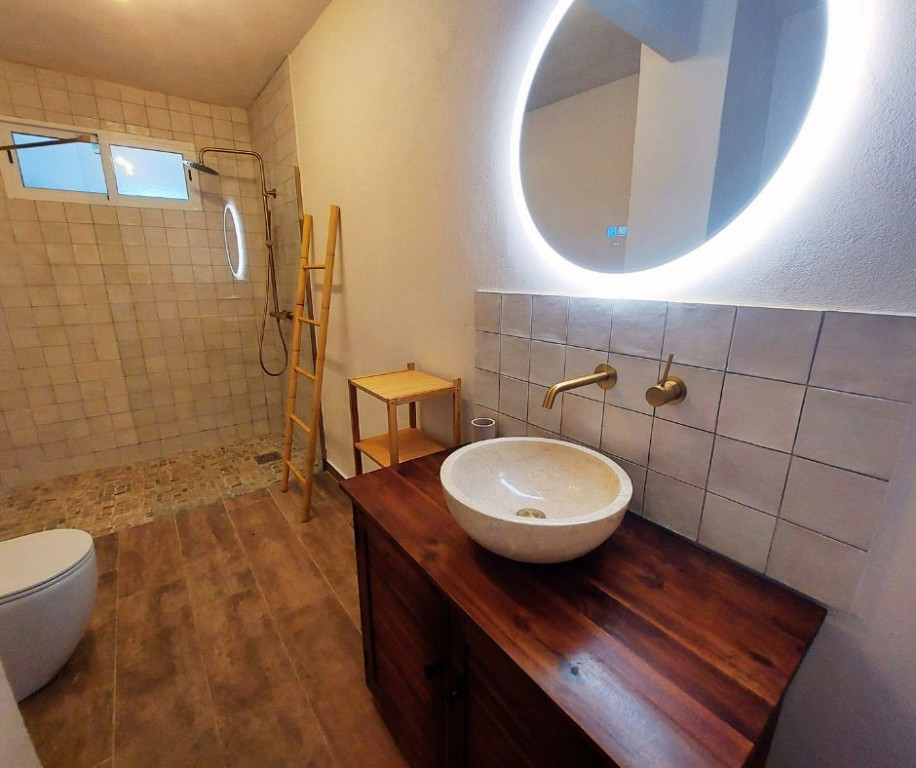 The recently renovated home blends rustic charm with modern comfort, boasting an eclectic decor that creates a warm, inviting atmosphere. With 4 spacious bedrooms and 4 well-appointed bathrooms, the villa's bright and airy interiors provide the ultimate in Mediterranean living.