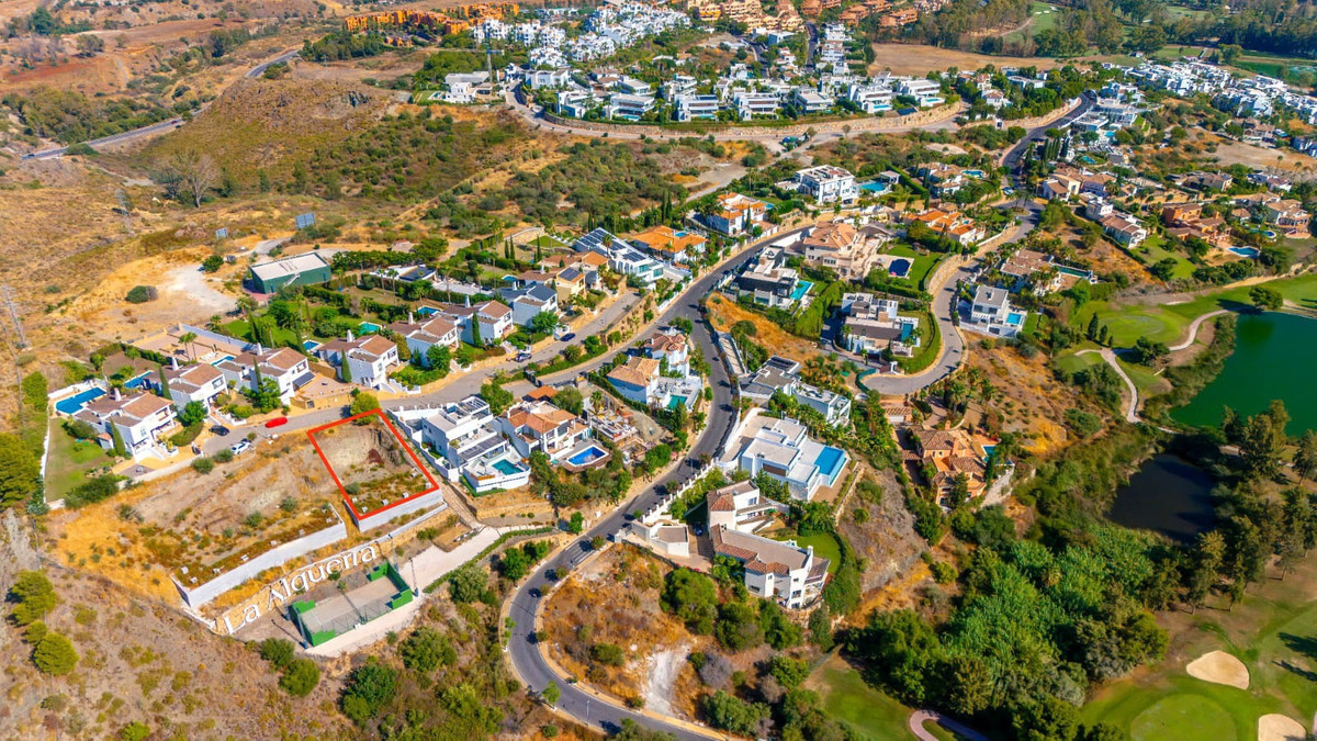 Residential plot for sale in a gated community in Benahavis by La Alqueria. The plot is 588m2, west facing with open views to the golf. There is a basic construction project in place for a villa of 435m2. A fantastic plot in a privileged location close to local amenities, a short drive to the beach, Marbella and Puerto Banus.