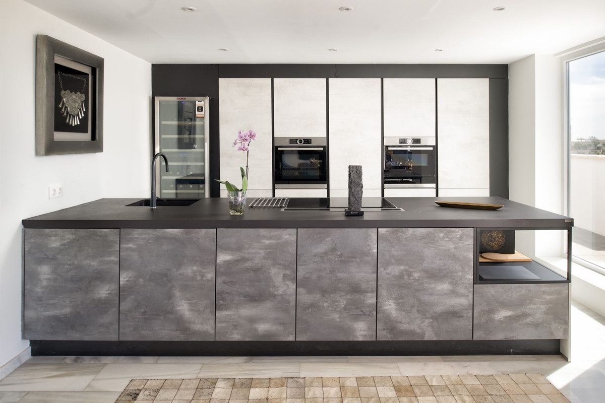 A well located penthouse close to Puerto Banus, the beach & amenities. Situated on a corner gives this property total privacy and the wrap around terrace enjoys both sea & mountain views. Spacious layout with a large family kitchen as the focal point, from here you access the main terrce with a large outdoor kitchen and dining area plus a jacuzzi facing the sea. The bedrooms are situated away from the living area creating privacy and all with access to the terrace. The property is accessed from the underground parking ( 2-3 cars), there is also a large storage room. The urbanisation has 24 hrs security, several pools, basketball and padel courts.