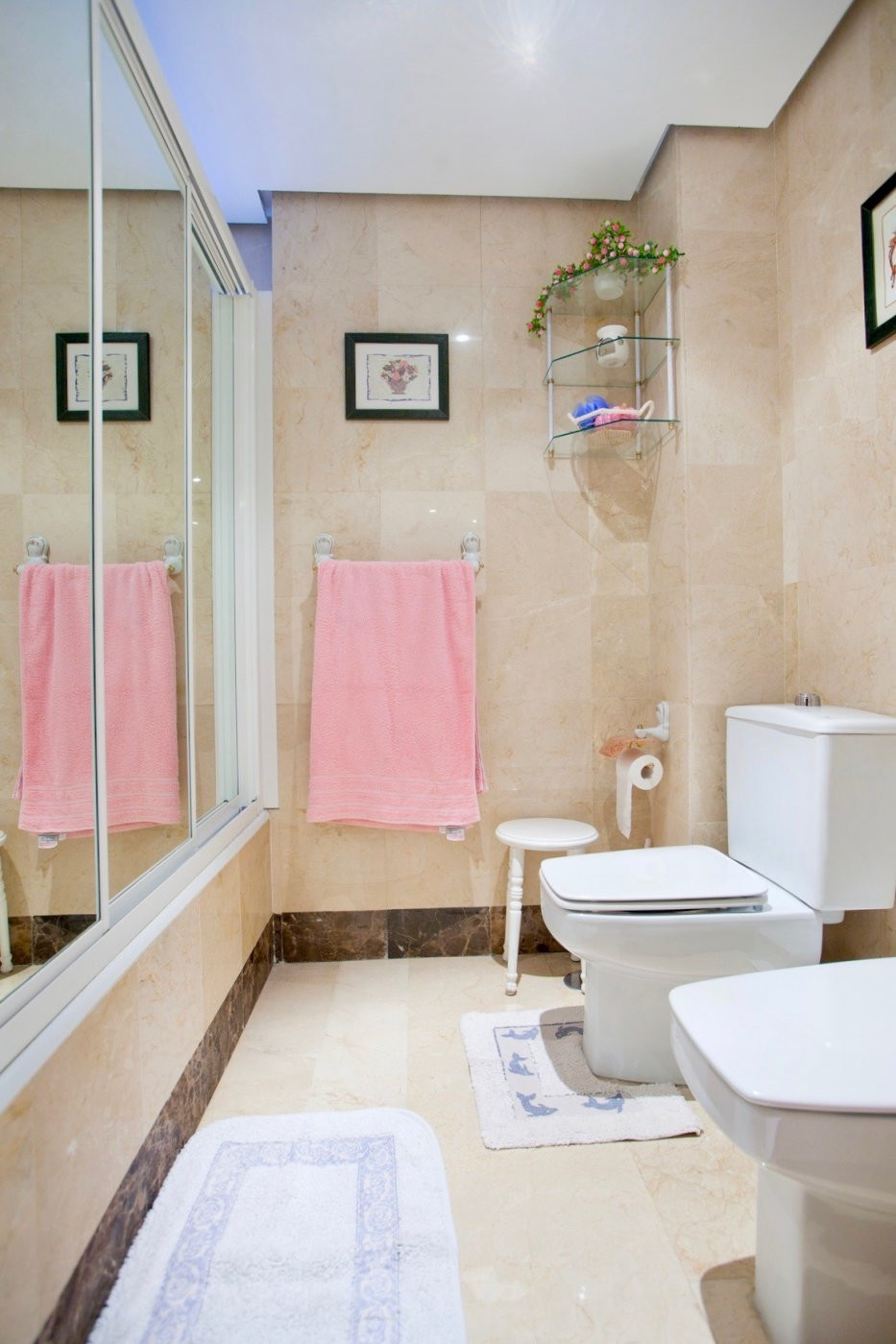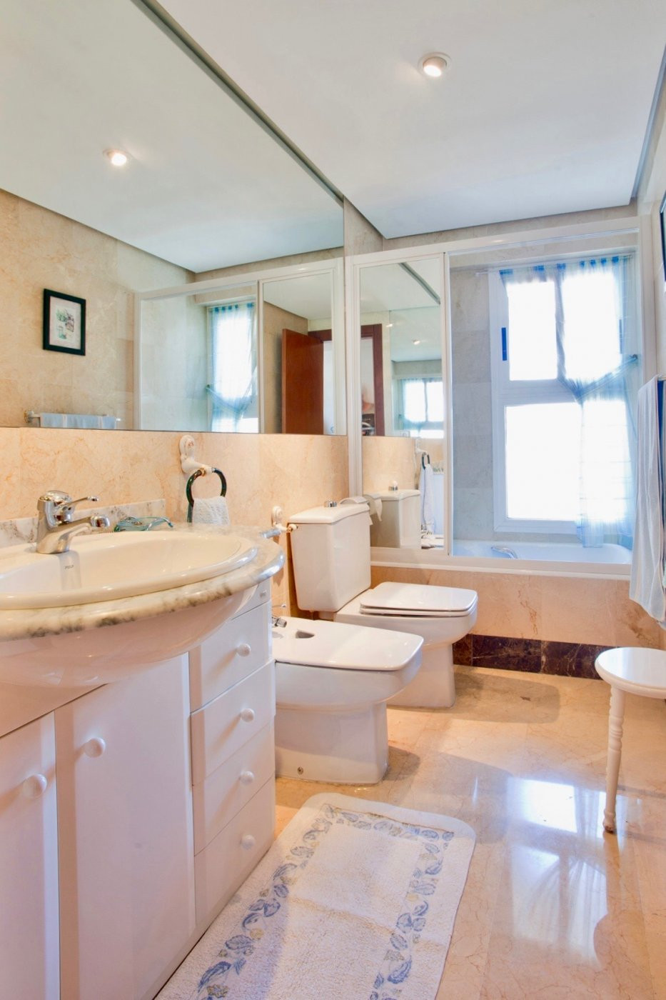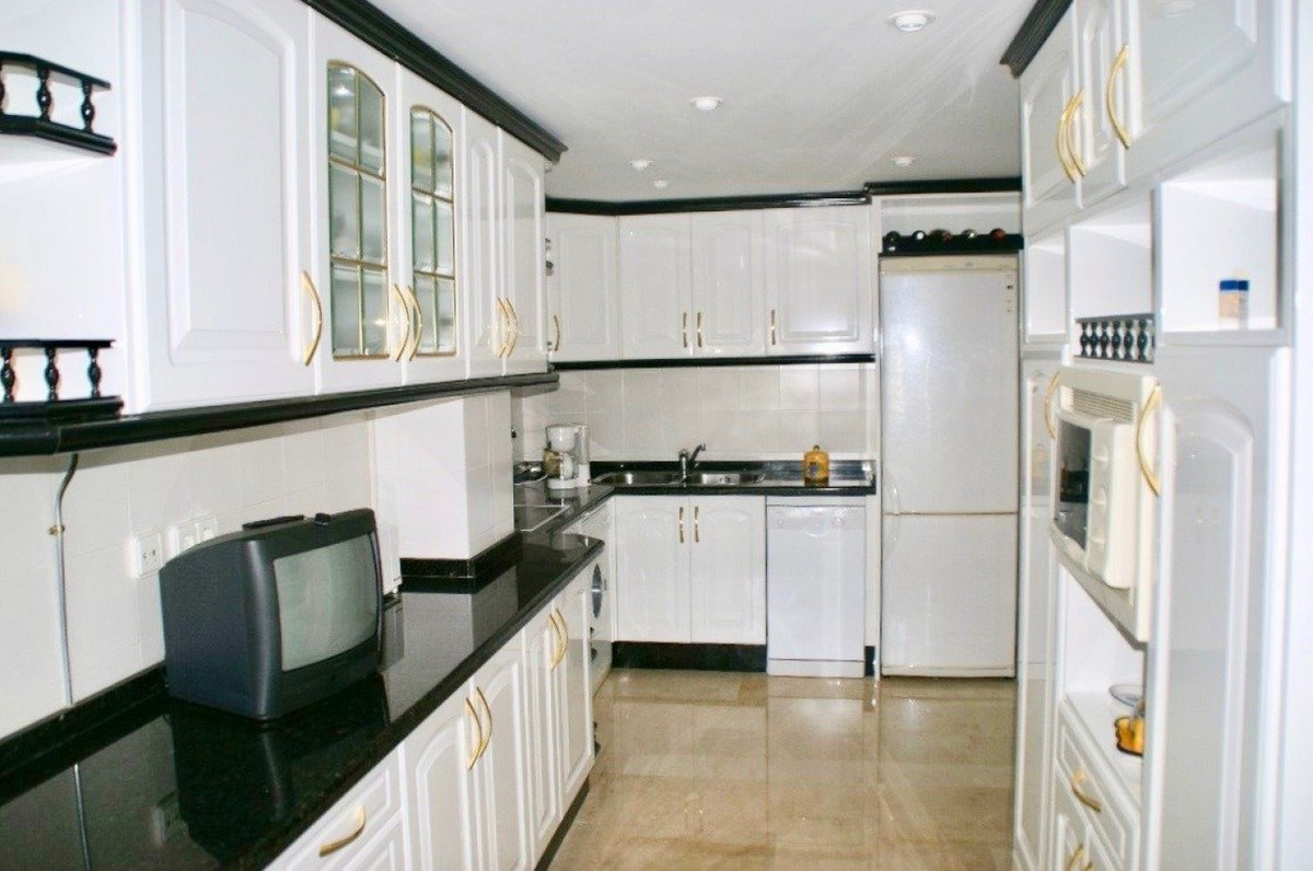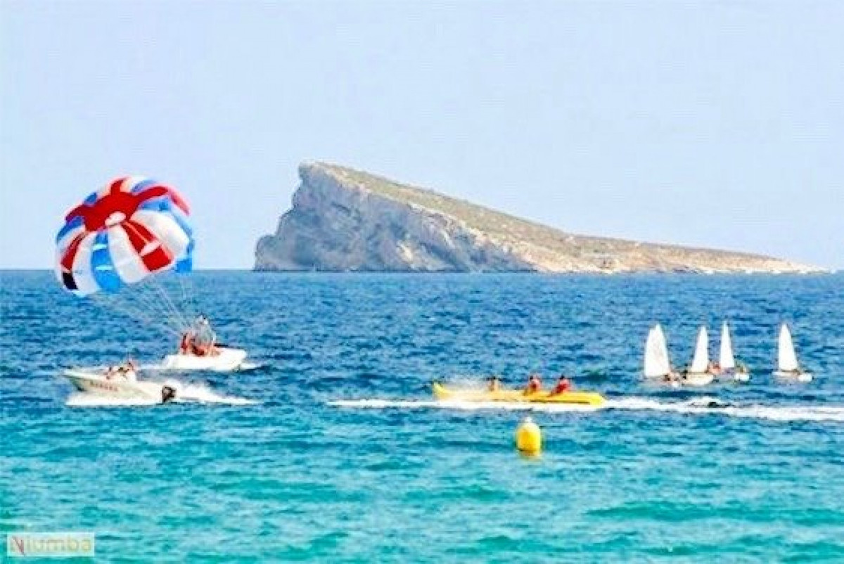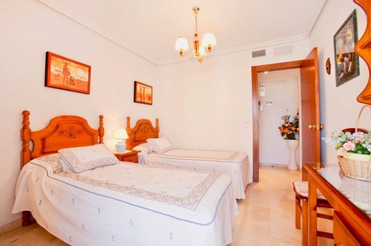 Fantastic luxury flat with 135 m² of living space. Consists of 3 bedrooms (1 suite with 1,35 m. bed and the others with 2 beds of 90 cm. each one and built-in wardrobes in all of them), 2 complete bathrooms, one with bathtub and the other one with shower with anti-slip floor, living-dining room of 38 m. (with sea views), large fully fitted kitchen with all the necessary appliances and utensils, high quality black marble worktops. The awnings and blinds are automated, and it also has a water softener that eliminates the lime of the water in Benidorm, from the interior of the flat. 2 covered terraces of 4 m2 each. The building has 4 lifts and a freight lift, 24 hour concierge, video entry phone, a large swimming pool with solarium facing the sea, and on each floor 1 room for waste disposal. It is prepared for disabled people, with access adapted for people with reduced mobility. Very close to all services and the centre.