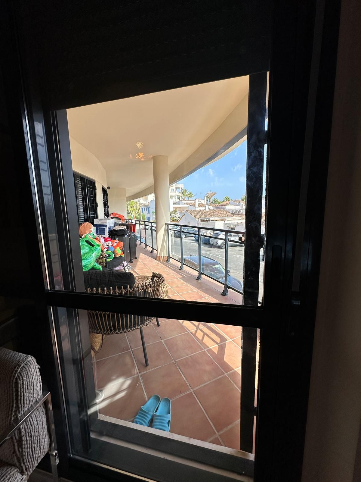 "The apartment is located west of Marbella on the "New Golden Mile" few minutes from the lively marina of Puerto Banus and the more traditional town and beaches of Estepona. The building has a beautiful roof top infinity pool with views across to Africa. Close to all amenites and surrounded by 5 star resorts and public transport, this southwest beautiful ground floor apartment consists of a bright living and dining area with access to the terrace and the private garden. Three bedrooms with built-in wardrobes and two bathrooms, one en-suite. Fully equipped kitchen and laundry room. The apartment comes with an underground parking and storage room. Security in the compound, solar panels and only few steps to the beach and coastal walkway."
