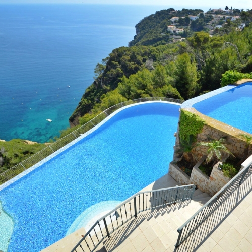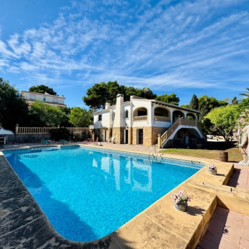This villa is located in the quiet urbanisation Cap Marti just 2 km from the beach. The property is situated on a plot of 1400 m2 and is spread over 3 floors. The villa consists of a large naya, a spacious living-dining room with lots of light, a fully equipped kitchen, 4 double bedrooms and 3 bathrooms. Moreover, on the ground floor there is another guest house with a separate entrance. Here we find another living-dining room, a kitchen, a bedroom and a bathroom. There are sea views from the naya and from the dining room. In addition, there is also a garage, a barbecue, several terraces, a swimming pool and a garden. The villa also has a rental licence.