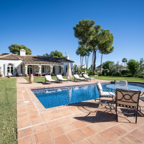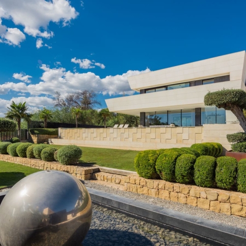 This elegant five-bedroom, south-facing luxury villa is situated in the prestigious Village Las Lomas de Magna Marbella complex on Marbella's Golden Mile. The complex offers 24-hour security service, two large community pools, and lush tropical gardens of exceptional beauty. The villa enjoys a prime location, close to all amenities, including supermarkets, shops, restaurants, schools, and golf courses, and is only a five-minute drive from the sea.