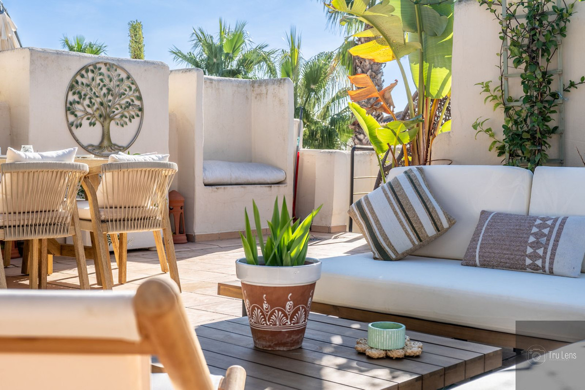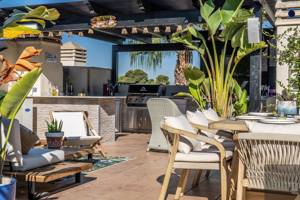 We are pleased to present this beautifully updated 2 Bed, 2 Bath Penthouse Apartment on Phase 1 of Roda Golf, featuring a remarkable rooftop garden complete with a BBQ kitchen area. This outdoor space is designed for enjoyable living, equipped with a built-in BBQ, marble countertops, hot and cold water, a fridge/freezer, and a wine fridge, along with a TV and Bose sound system, making it ideal for entertaining. You can relish in panoramic views, witnessing approximately 300 days of stunning sunrises over the Mar Menor and sunsets over the mountains.