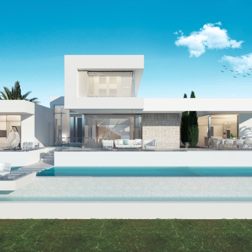 Luxury contemporary villa located in Los Flamingos, a residential and golf area in Benahavís, next to the five-star Villa Padierna Palace Hotel, offering elegant facilities, spa service and restaurants.