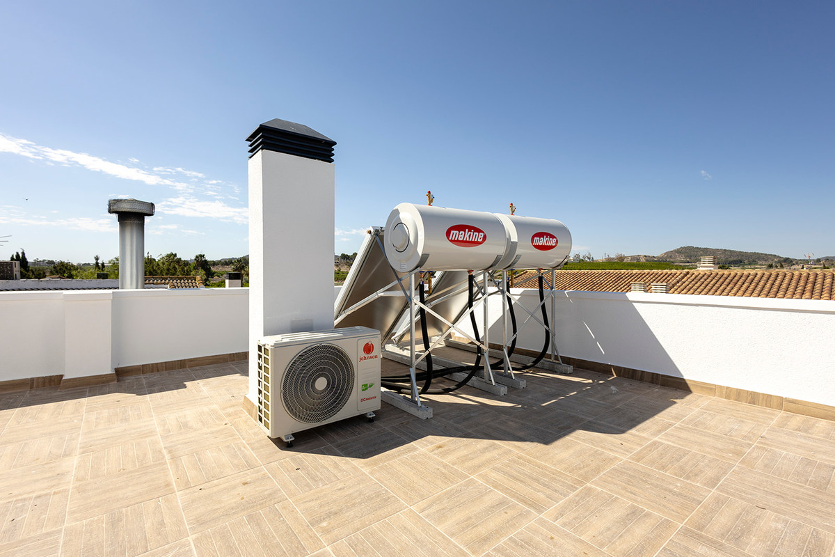 The qualities and standard finishes of this new construction are great: all homes include lighting, exterior carpentry pvc folding and tilt and turn, double glazing, underfloor heating and screen in bathrooms, pre-installation of air conditioning ducts, installation of hot water through solar panel with thermosiphon of 160 l..