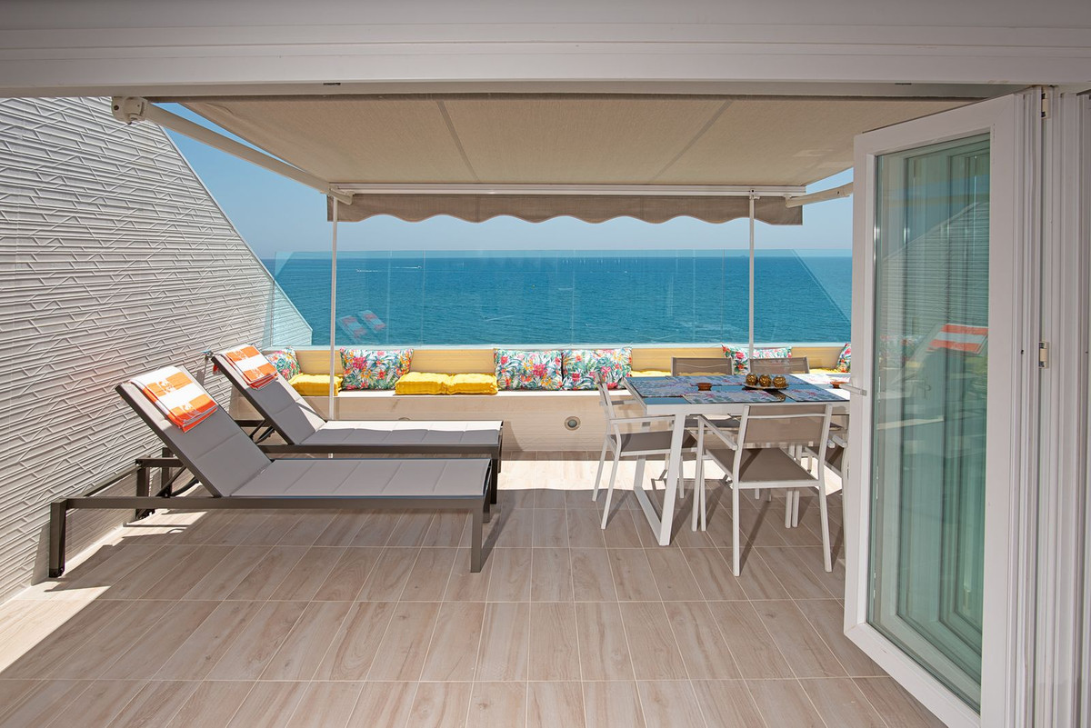 • Spacious living room: 28 m² with an open kitchen leading directly to the terrace with stunning sea views.