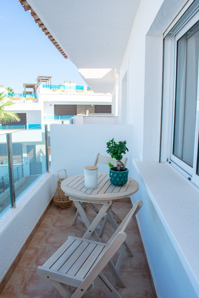 This beautiful two-level townhouse offers the opportunity to live in a brand new home at the price of an apartment, in a gated community and surrounded by stunning views of the sea and the lagoon. With 115 m² built and 80 m² of living space, the property has been tastefully furnished, providing a modern and welcoming atmosphere.\n