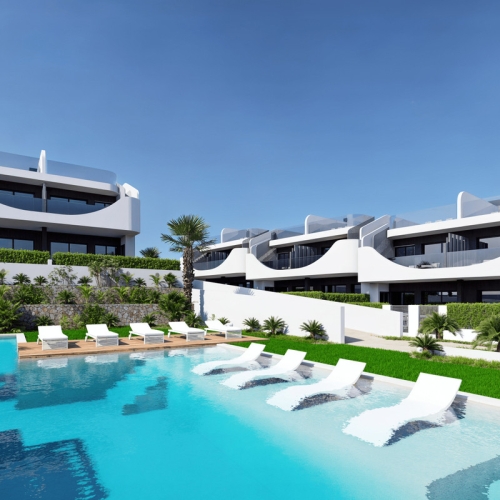Residential of 165 homes with 2 and 3 bedrooms, distributed over 7 floors. It has parking and storage rooms. Completely closed residential with community pools for adults and children, green areas, playground for children and area for adults with bio-healthy circuit, It is located on the Costa Blanca in San Miguel de Salinas near Campos Golf, beach and Shopping Centers.
