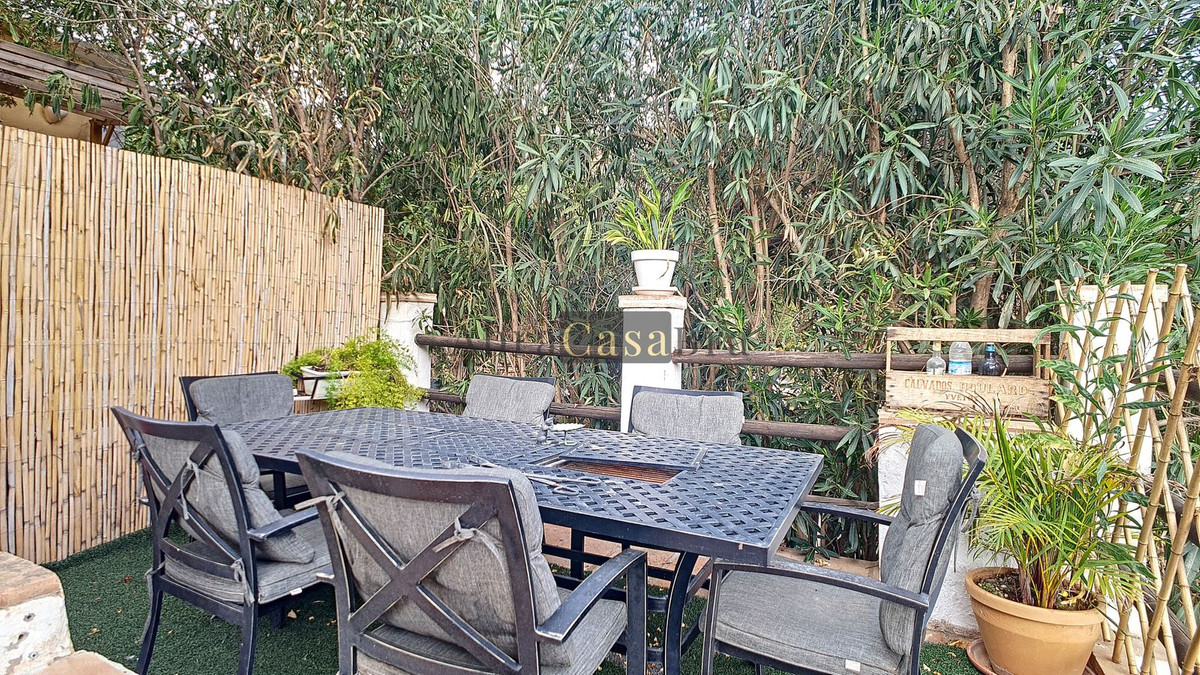 The beautifully landscaped garden is a true retreat, boasting various fruit trees, a vegetable patch, a charming decorative pond, and multiple inviting seating areas for enjoying the Andalusian sunshine.