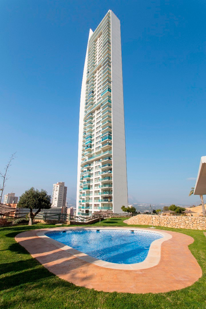 On the 29th floor of Torre Lugano, there is this apartment with stunning panoramic views over the sea and the city of Benidorm. The apartment has a surface area of 89m² with 2 bedrooms, 2 bathrooms, a living room, and a large terrace where one can enjoy the sun and the views. There are also 2 private parking spaces and 1 storage room within the building. The apartment is south-facing. It has been very well maintained and features a new Daikin air conditioning unit with integrated WIFI from the year 2024. The Torre Lugano building is the second tallest building in Benidorm, with a total of 42 floors and a height of 158m.