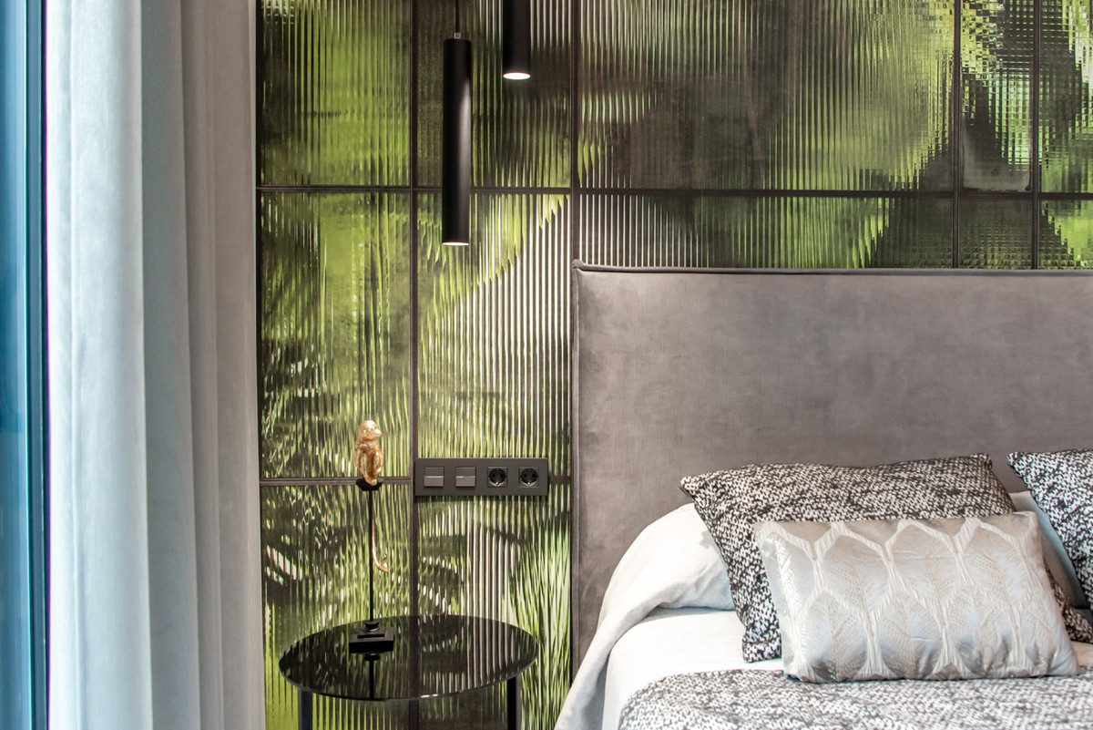 Arriving to the Urbanisation Montroyal we find a natural stone wall with a height of 7 metres and the automatic access doors to this villa arriving to the covered garage at street level with double height, natural light and garden with palm trees of different heights of 180 m2, a glazed room of 78 m2 with lift, interior staircase, cloakroom and enough space to put armchairs, convert this space into an office or simply into a waiting room for visitors.