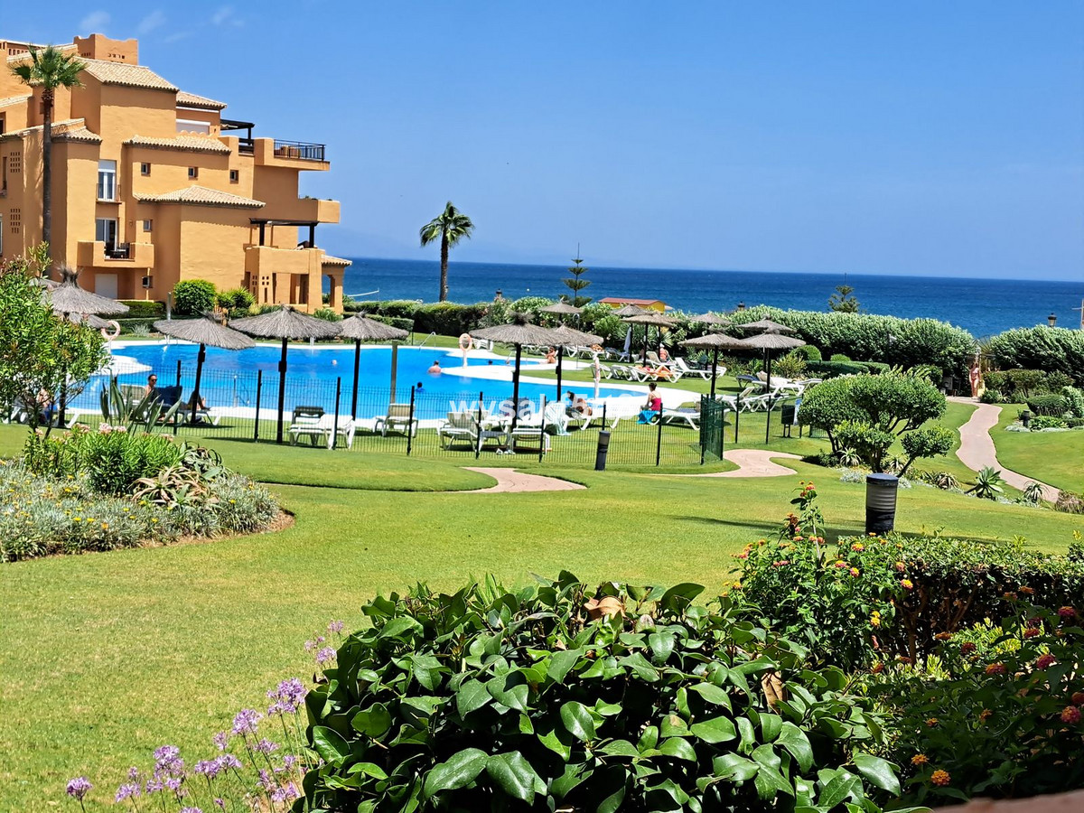This well-positioned apartment bright and spacious ground floor is situated in the popular Los Granados de la Duquesa, Manilva Costa Del Sol. Front-line beach property between the marina of La Duquesa and the charming village of El Castillo. This is three bedrooms with fitted wardrobes in the rooms and the corridor, 2 bathrooms, a fully fitted kitchen with a laundry area, a 30 m2 bright spacious lounge diner opens out to a good size southeast facing terrace of 47 m2 which benefits views to the beach, pool, and communal gardens.