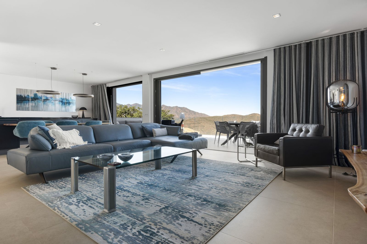 The top level is your personal outdoor oasis. This sun-soaked terrace is designed for relaxation, featuring a jacuzzi, plunge pool, and a bar area. Whether hosting guests or enjoying a quiet evening, the spectacular views of the UNESCO-protected Sierra Alpujata and the charming village of Mijas, sunrise over the Mediterranean in the west, and sunset over the national park ‘Sierra de las Nievas to the east. There's also a guest toilet and a pedestrian bridge providing quick and convenient street access and parking from this level.