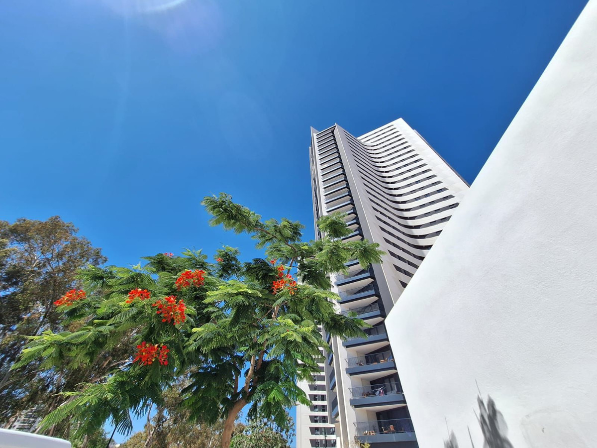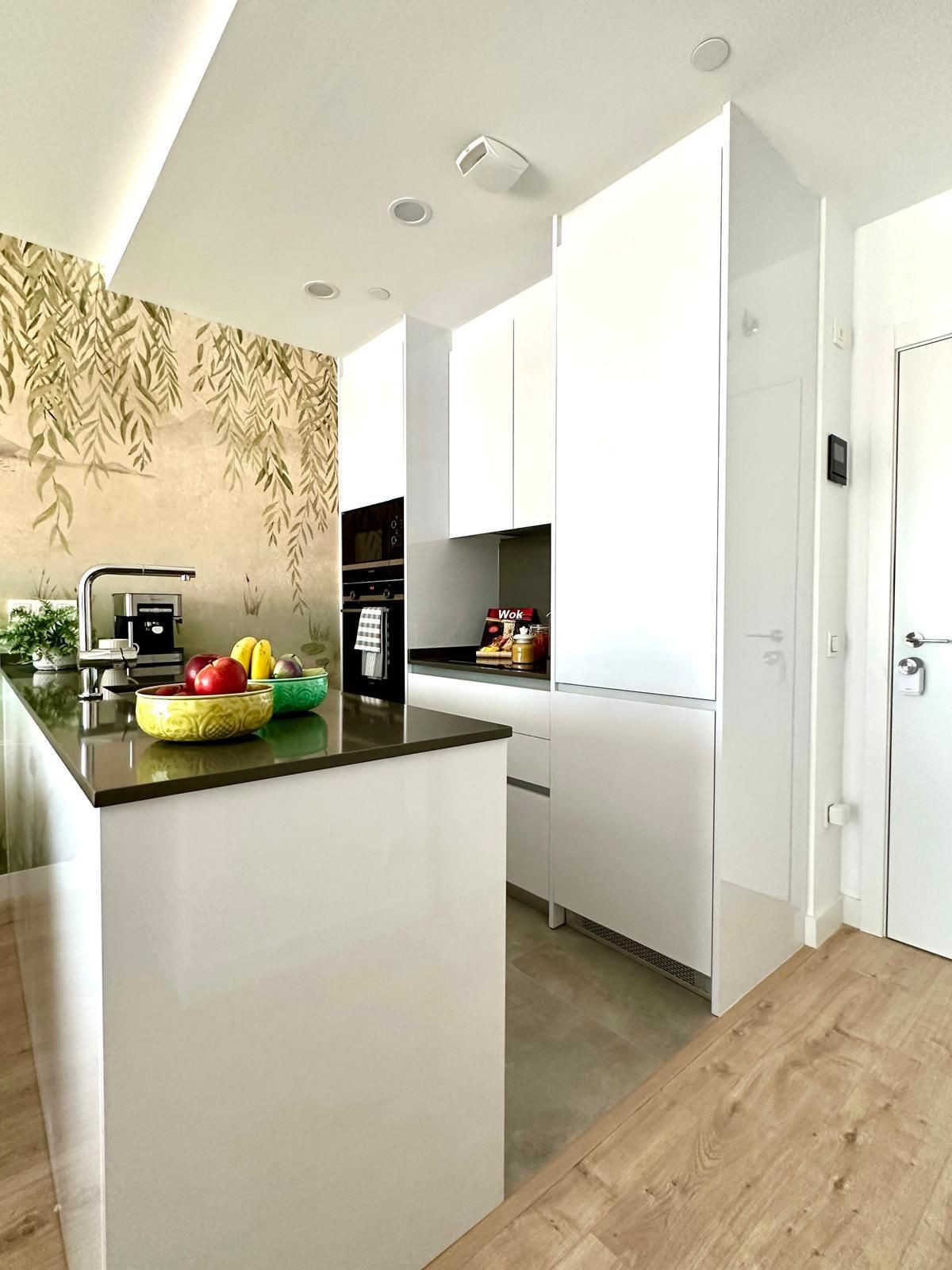 Moderen building with swimming pool and roof terrace with sea and city view. Coworking and multifuncional rooms, gym, gastrobar, cinema, children's playroom, security and concierge in place.