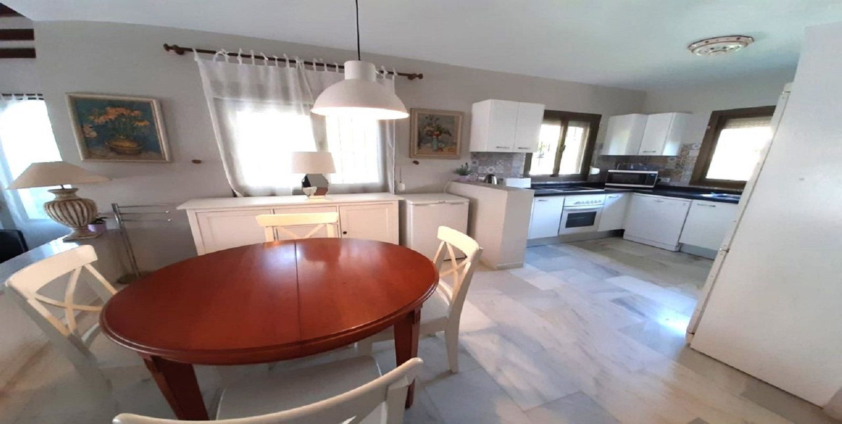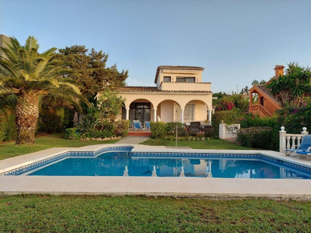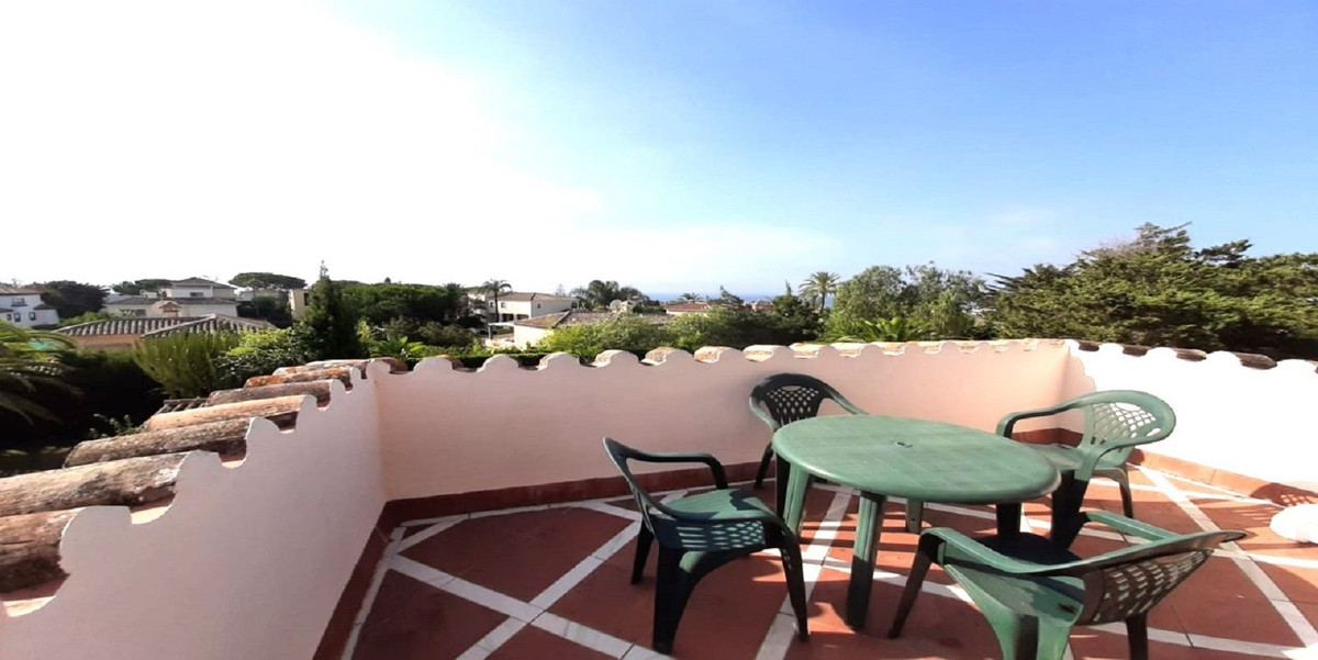 Detached villa with 3 bedrooms, 2 bathrooms guest toilet, master bedroom en suite with dressing room, terrace bathroom and sea views, swimming pool, barbecue, parking for 2 cars, large basement with 2 rooms and possibility to extend it, private alarm and 24H security in the urbanization, beach only 5 minutes walk away, supermarkets and restaurants in the urbanization, Ideal as a second home or as a regular family residence. Located in one of the best urbanisations in Marbella.