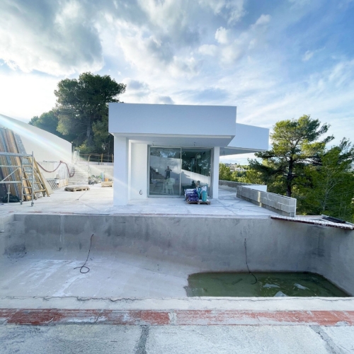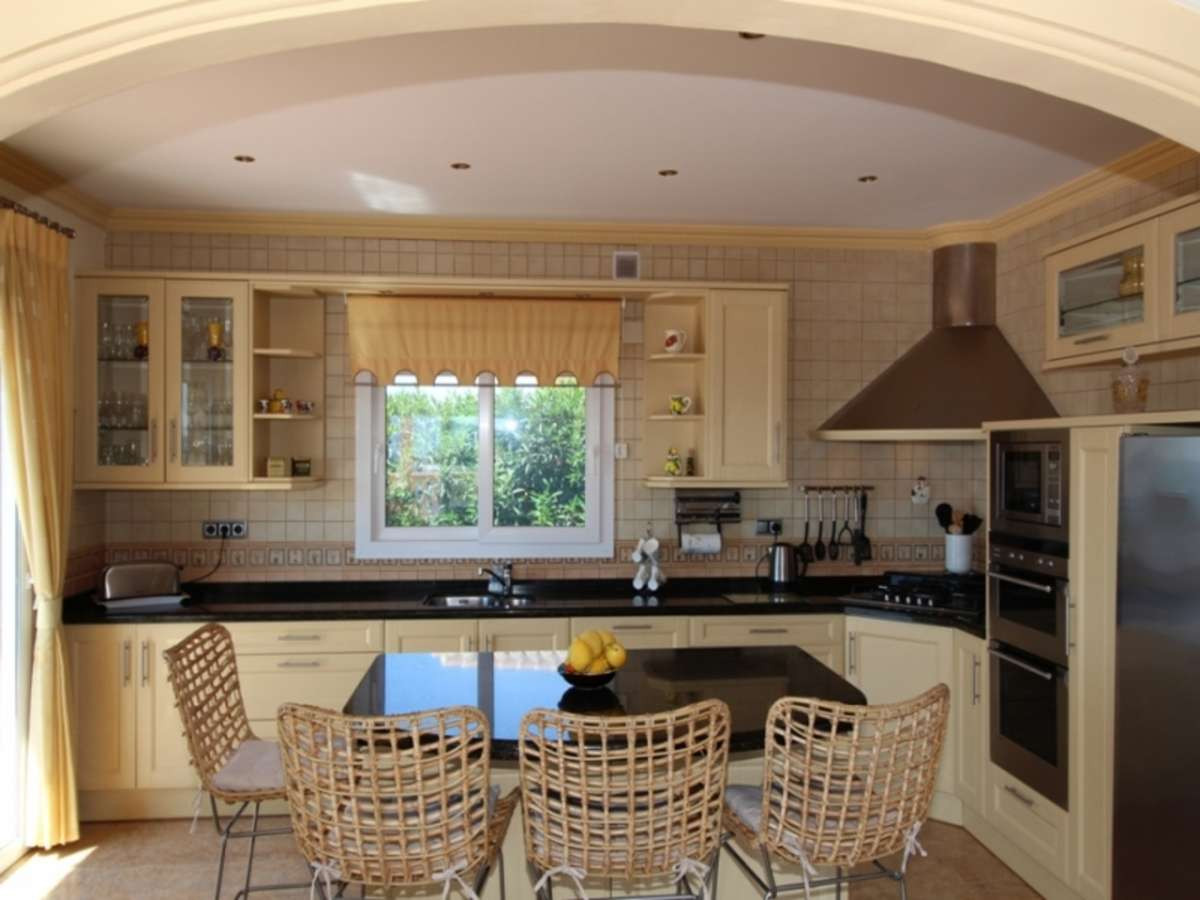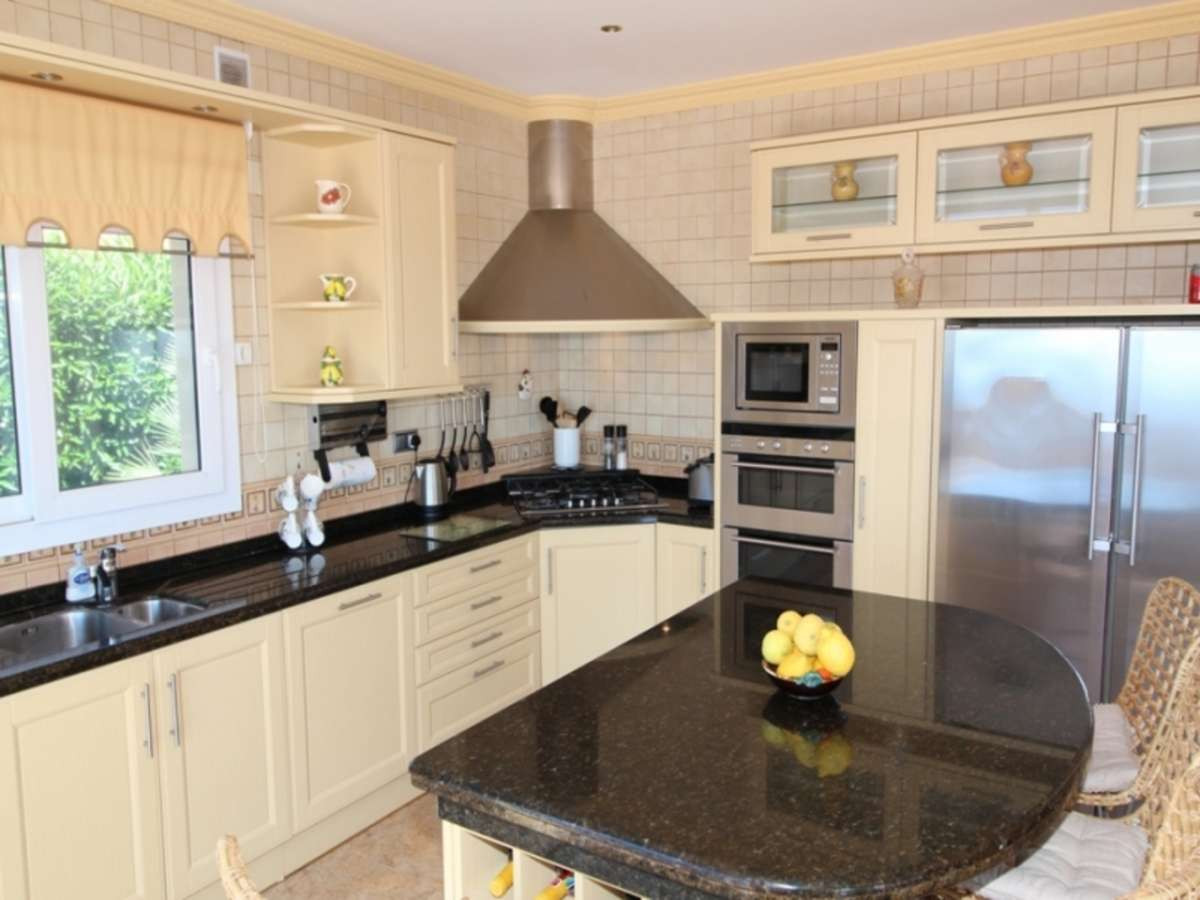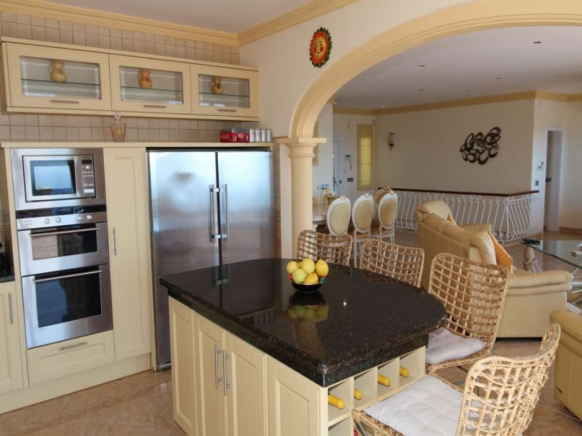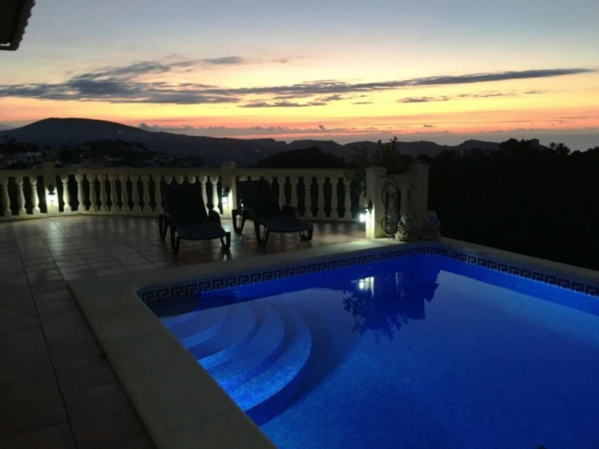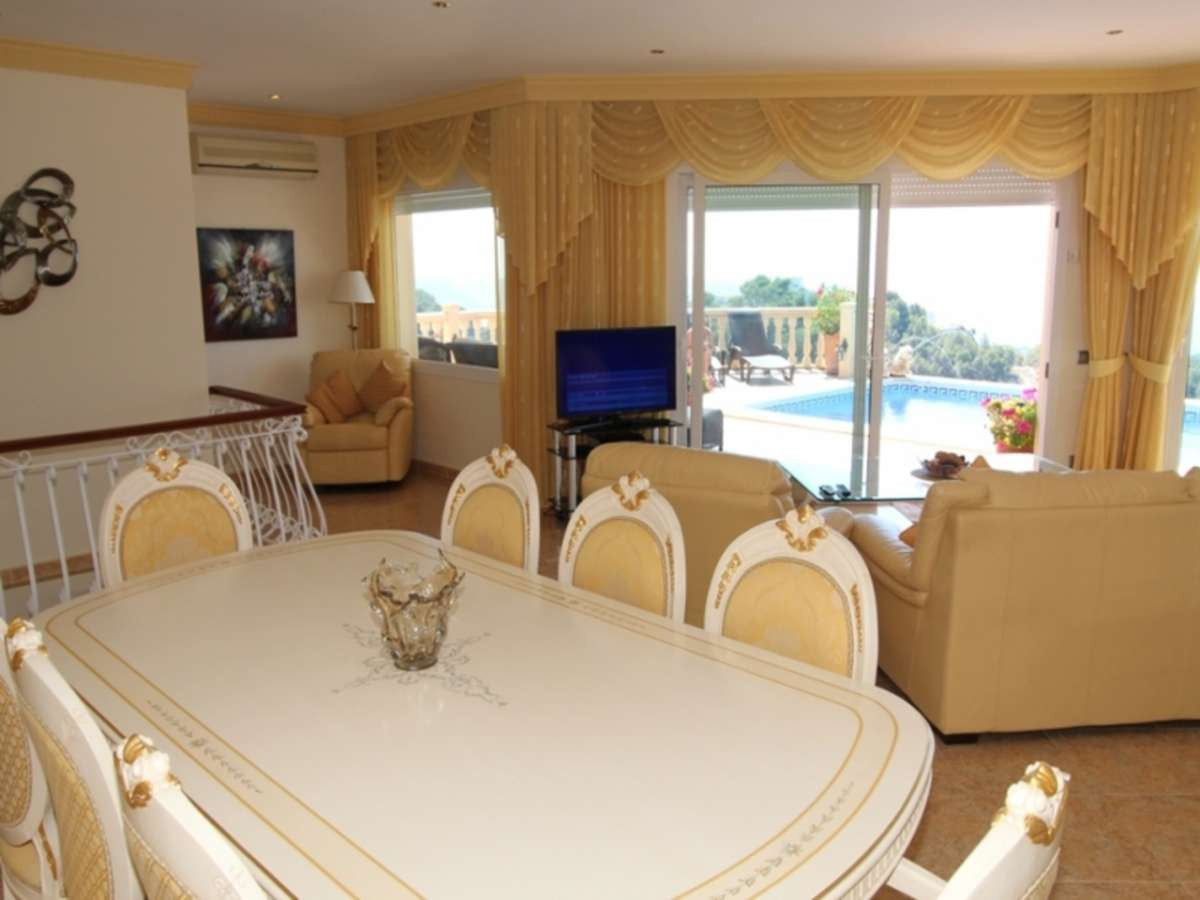 Panoramic Villa with stunning sea views for sale in Benimeit, 4.5km drive to the town of Teulada and 5km to the Blue flag sandy beaches of Moraira.Built-in 2004 comprises of one main level with spectacular views of the sea and Penon de Ifach. Entry via a driveway leading to the double garage. On the upper lane a Pedestrian gate to the main door or via the internal staircase from the garage. Entry via the main door into the spacious open plan Lounge and Dining area, with large sliding doors with views over the pool to the sea.Open plan kitchen with central Island and granite worktops, fully fitted with appliances, double oven and sliding doors to the pool terrace. Underfloor Central heating on this level together with Air conditioning in all bedrooms. The double glazing windows have electric blinds.Doors from the Kitchen and Lounge flow onto the newly laid terrace with non-slip natural stone tiles, designed to collect any surface water and diverts to a large water deposit and diverted and used in the garden via a timed irrigation system. Master bedroom with His & Hers fitted wardrobes in the walk-in closet area, sliding doors flowing out to the terrace. En-suite bathroom with corner bath and walk-in shower, double vanity unit, WC. Further two bedrooms with fitted wardrobes sharing a shower room.Internal staircase to lower level with an independent 1 bedroom, sea view guest apartment with en-suite shower room, full kitchen access from the garage or independent front door.Outside on the 785m2 plot, the terrace has an open Naya, 8 x 4m2 infinity swimming pool, Portable BBQ area and a shady Gazebo. Established and manageable garden with flower, Mediterranean plants and fruit trees. There is also a lower terrace leading from the guest apartment.Extras include a high-tech video surveillance system with cameras that can be accessed via your mobile device anywhere in the world. Wall mounted solar heating system for hot water and heating the pool, New water pressure of 4 ¼ bar, new costs effective heating system, cutting yearly flue bills. Wifi throughout the property.