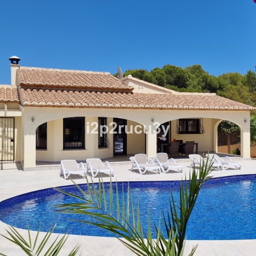 Situated in the tranquil L'Arnella/El Portet neighborhood, just steps from the pristine beaches and vibrant town of Moraira, this stunning villa offers the perfect blend of luxury and convenience. Enjoy breathtaking country views and glimpses of the sparkling Mediterranean Sea from your private oasis.Spread over three levels, this spacious home features a luxurious living area with a cozy wood-burning fireplace, a separate dining room, and a covered terrace ideal for alfresco dining and relaxation. The master suite boasts high-quality fitted wardrobes, a walk-in shower, and a private retreat. The fully equipped kitchen, complete with modern appliances, is a chef's dream.Descend to the lower level to discover a versatile entertainment area, including a bar, a covered terrace, a pool area, an internal garage, and ample storage space. A private cinema room and a pool table provide endless hours of fun. The outdoor space is equally impressive, featuring a heated 11x5 pool with a cascading waterfall, a childproof mesh for safety, and a beautifully landscaped garden with fruit and olive trees. Enjoy outdoor cooking in the purpose-built kitchen or relax under the shaded pergola.With gas central heating and air conditioning throughout, this spacious villa is the ideal choice for families or those seeking a comfortable and convenient lifestyle. Don't miss this opportunity to make your Mediterranean dream a reality. Contact us today to schedule a viewing.