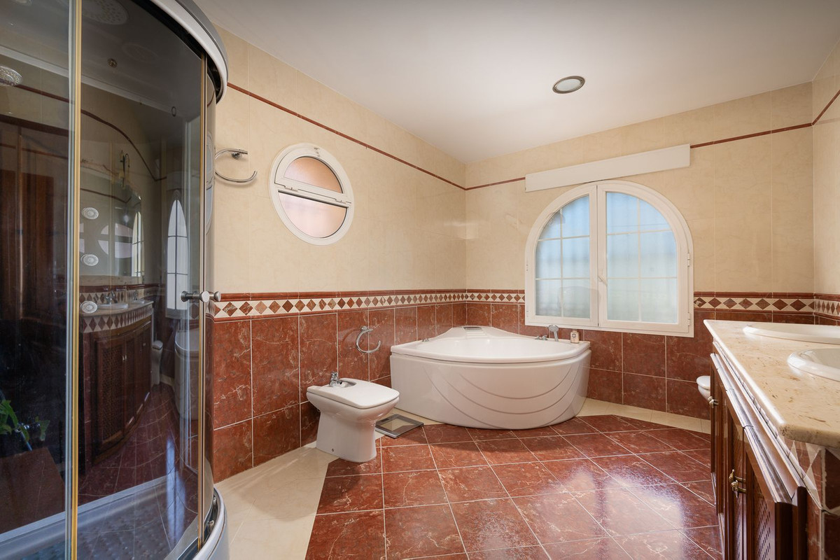 Beautiful large family home which can be divided into separate dwellings if needed. The villa is situated in a quiet very well respected neighbourhood in walking distance to shops, park, public transport. Its location is excellent for access to main roads leading to Malaga city, the vast growing business centre and industrial areas, the beaches, public and private schools. Despite its vicinity to all of these, the villa offers open panoramic views and tranquility. It has underfloor heating throughout the upper floor for the cooler winter months and air conditioning for use if required for the rest of the year. The pool, garden and its barbecue area offer a great space for gatherings and entertainment.