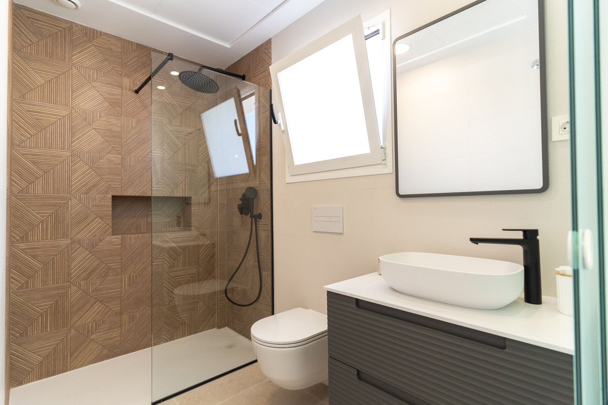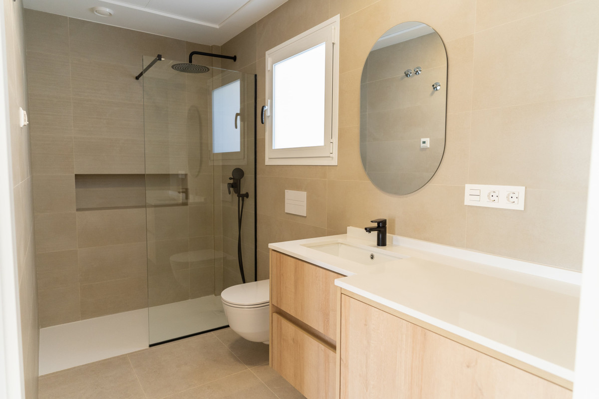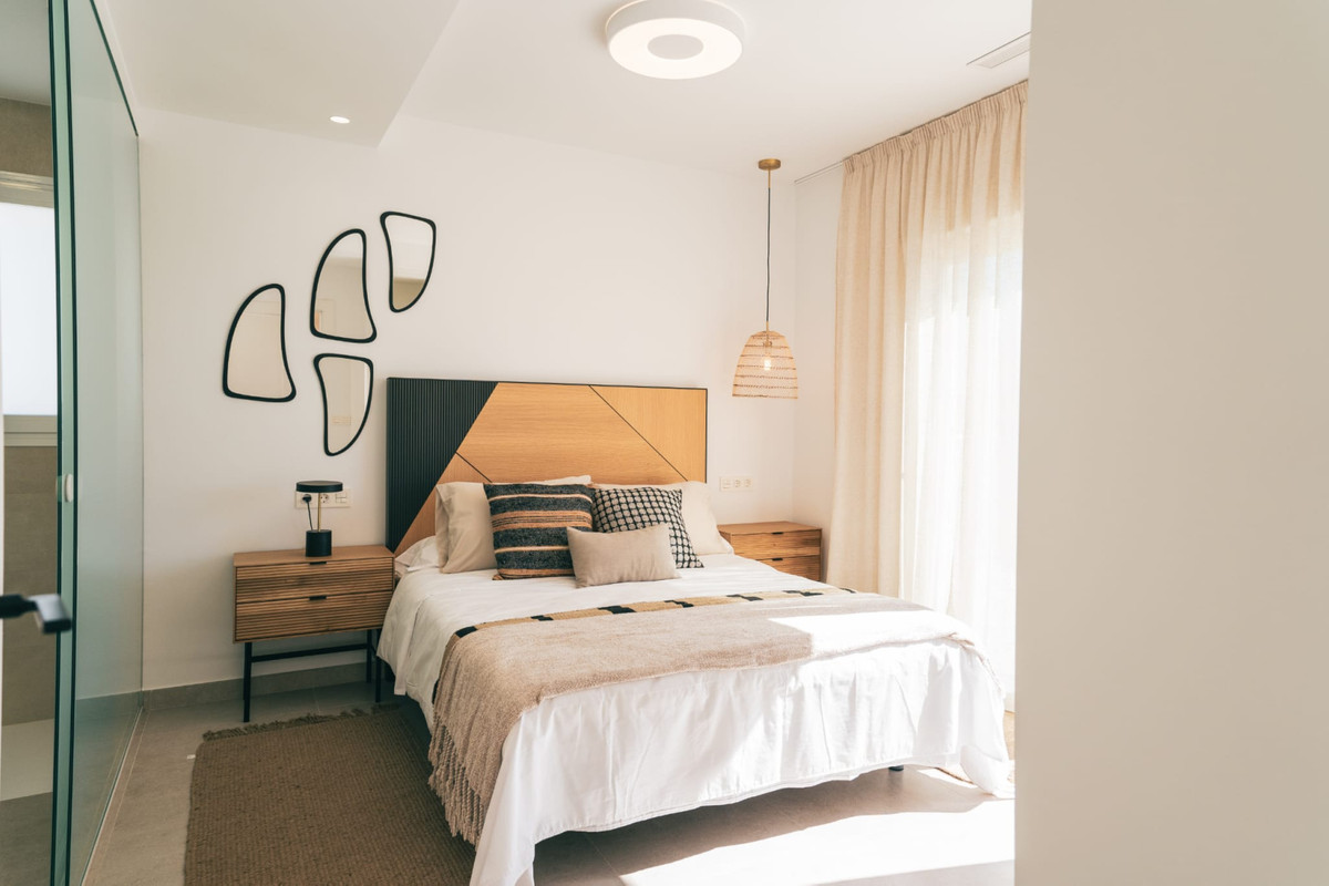 In these villas you will find the best Mediterranean style adapted to modern design, combining elegance and comfort. Our detached villas have 3 bedrooms and 3 bathrooms, all en suite, ensuring privacy and comfort in every corner.