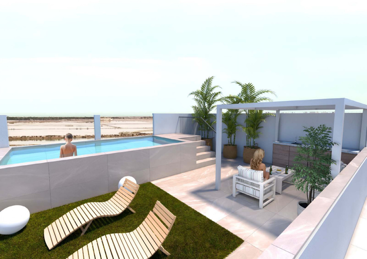 2 bungalows, each with private parking spaces, two bedrooms, two bathrooms and living-dining-kitchen. Ground floor bungalow with garden area and private swimming pool and upper floor bungalow with storage room, solarium with private swimming pool and outdoor kitchen.