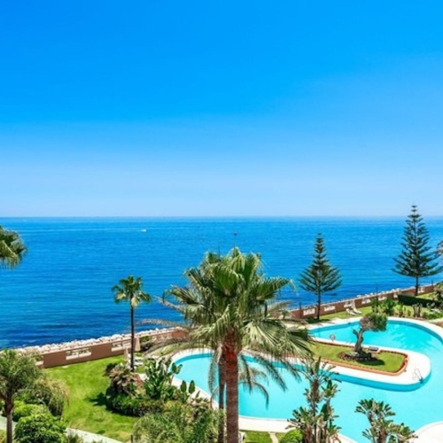 Beautiful one bedroom apartment in Alhambra del Mar on the Golden Mile of Marbella only 100m from the beach promenade and close to all amenities. The apartment consists of a spacious living-dining space with open American kitchen and direct access to a nice terrace with lovely views to the tropical garden of the complex. Furthermore there is a good size bedroom with bathroom and a small dressing area en suite. It is surrounded by the lush gardens and fountains of the Alhambra del Mar urbanization which evoke a permanent feeling of holidays and breathing space. With all amenities at hand and just a few metres from the beach, Capuccino and at walking distance to Marbella centre, the apartment offers an excellent location and a rare opportunity to live by the sea. Includes a good sized storage in the basement.