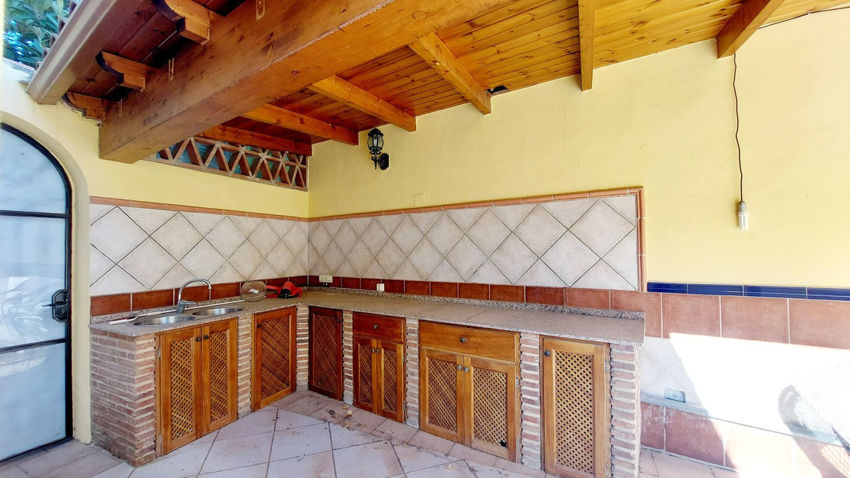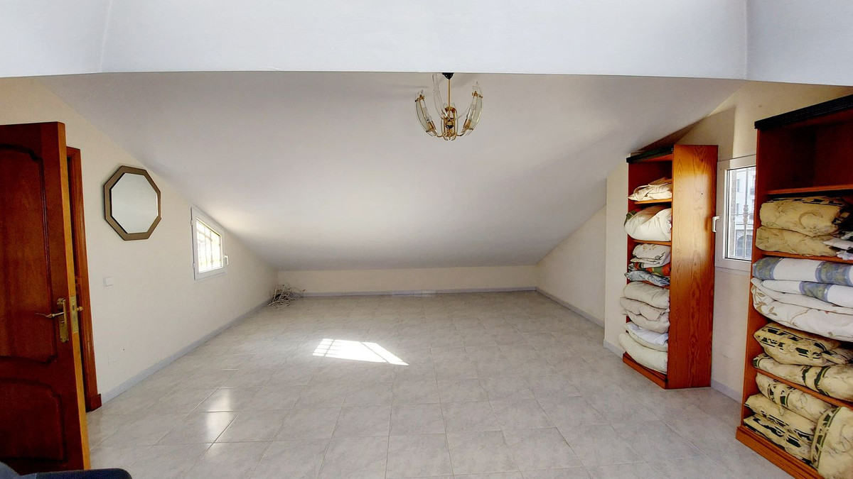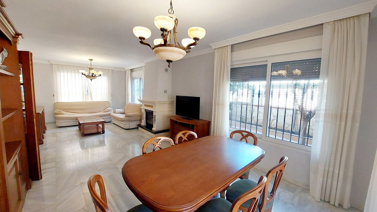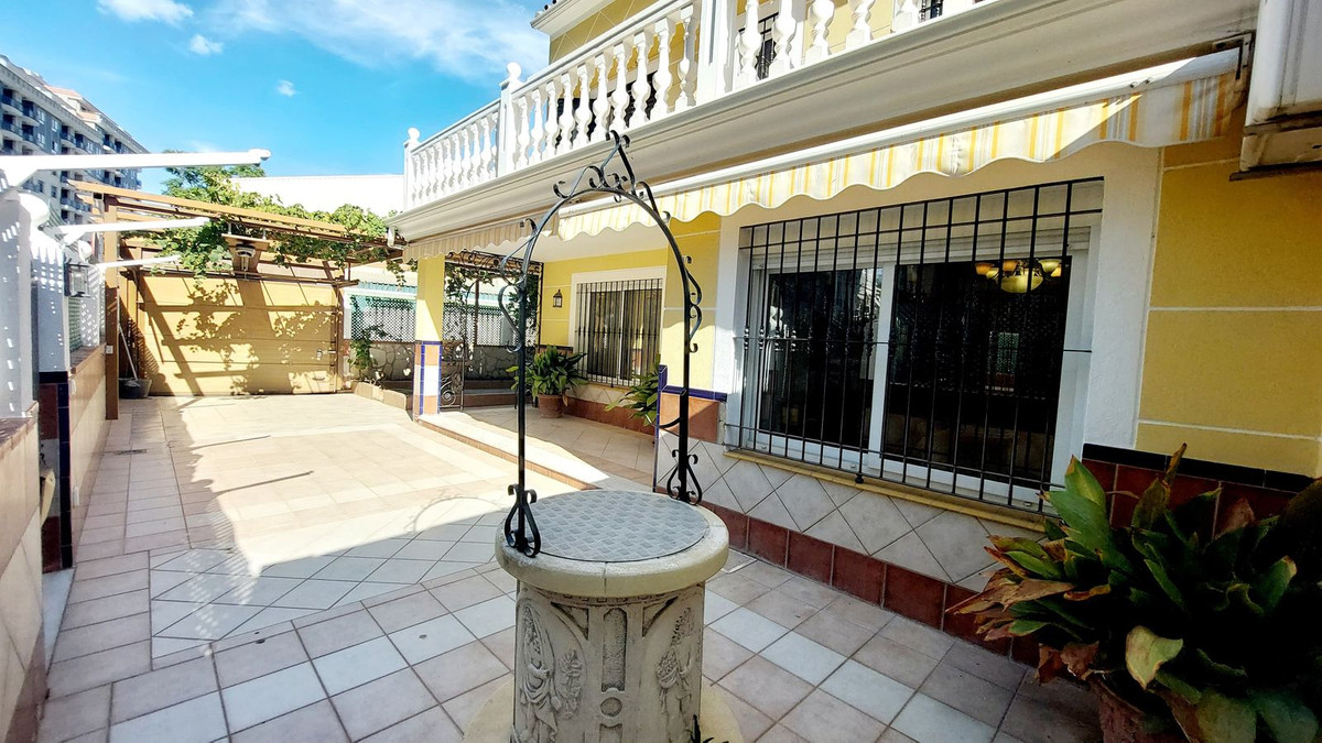 We present this huge and beautiful house in the heart of Los Boliches, privileged location close to the beach, all kinds of shops, supermarkets, schools, and easy access to the motorway. This huge house of 248m2 and plot of 363m2 is distributed over three floors, on the ground floor a hall, a huge living room with fireplace, a bedroom, a bathroom and a large kitchen from which you can also access the huge patio with space for swimming pool (there was one originally so it is easy to redo it because it retains the engine). On the first floor there are four large bedrooms and two bathrooms. The master bedroom has an en-suite bathroom and a large dressing room. Bedroom with access to a sunny terrace. On the second floor there is a bedroom, and a huge space with luminosity and access to another terrace, this space could be a huge bedroom, a living room, an office or an additional living room. The outside areas of the house are spacious and bright, it has two garages in line, a large patio with possibility of swimming pool, a kitchen outside to enjoy the whole house. Do not hesitate to contact us to visit this magnificent property.