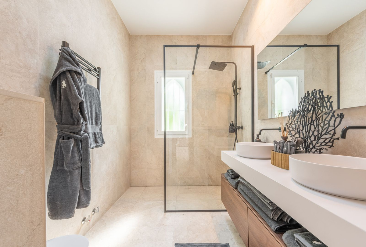 Luxury beach bungalow in Oasis Club, this emblematic beachfront community on the Golden Mile of Marbella. This house has all the living accomodation on the ground level together with a large private terrace with direct access from the living room plus another terrace upstairs with wonderful sea views. Total built area is 189 sq.m. The house has just been completely refurbished using only the best quality materials resulting in a very stylish and elegant finish. A mediterranean exterior with a scandinavian feel in the interior! It is the perfect residence for someone who demands quality living in an A1 location.