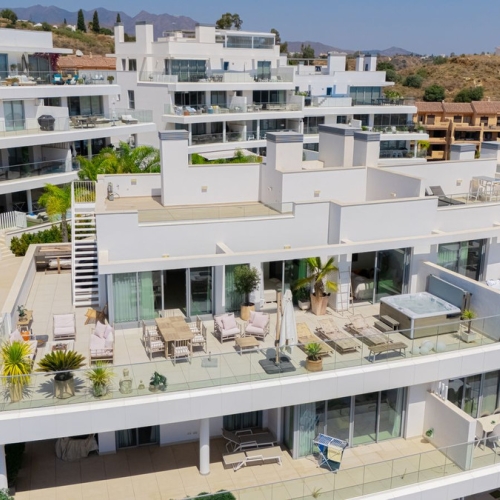 The enviable location of this place offers residents the best of all worlds. Offering stunning sea views from most apartments, it is thoughtfully arranged on a gentle slope within easy walking distance of the bustling Spanish town of La Cala de Mijas. The expansive promenade that lines the wide, pristine beaches is fringed with ‘chiringuitos', typical Spanish seaside restaurants, while the town boasts a comprehensive array of amenities from supermarkets to banks, bars and restaurants.