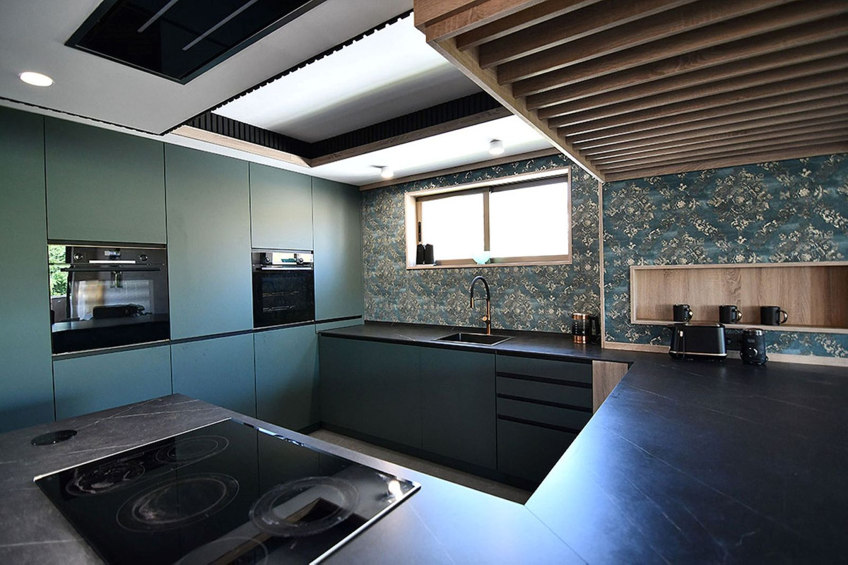 - Modern Kitchen: Integrated with a generous living area, featuring a custom-made library and dining space.