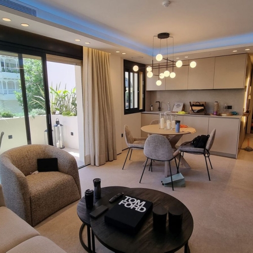 Welcome to this newly fully refurbished duplex penthouse in a popular urbanisation in Nueva Andalucia. As you enter you are greeted by the light and the soft colour scheme creating a feeling warmth and luxury. The open plan kitchen, living and dining room opens up to double doors onto the lower terrace which is perfect for that morning coffee. On this floor you also have the 4th bedroom and the combined bathroom and guest toilet. On the 2nd floor you have the large mastersuite with plenty of wardrobe space, large bathroom and a beautiful bay window looking towards Marbella and the sea. 2 guest rooms sharing a family bathroom completes this floor. The 3rd houses the solarium with beautiful sea and mountain views, a top of the line Jacuzzi and a storage room completes this space. The urbanisation has 3 pools, 24 hrs security and is situated close to the Aloha Strip with plenty of restaurants and services. Easy access to the penthouse from the underground parking space.