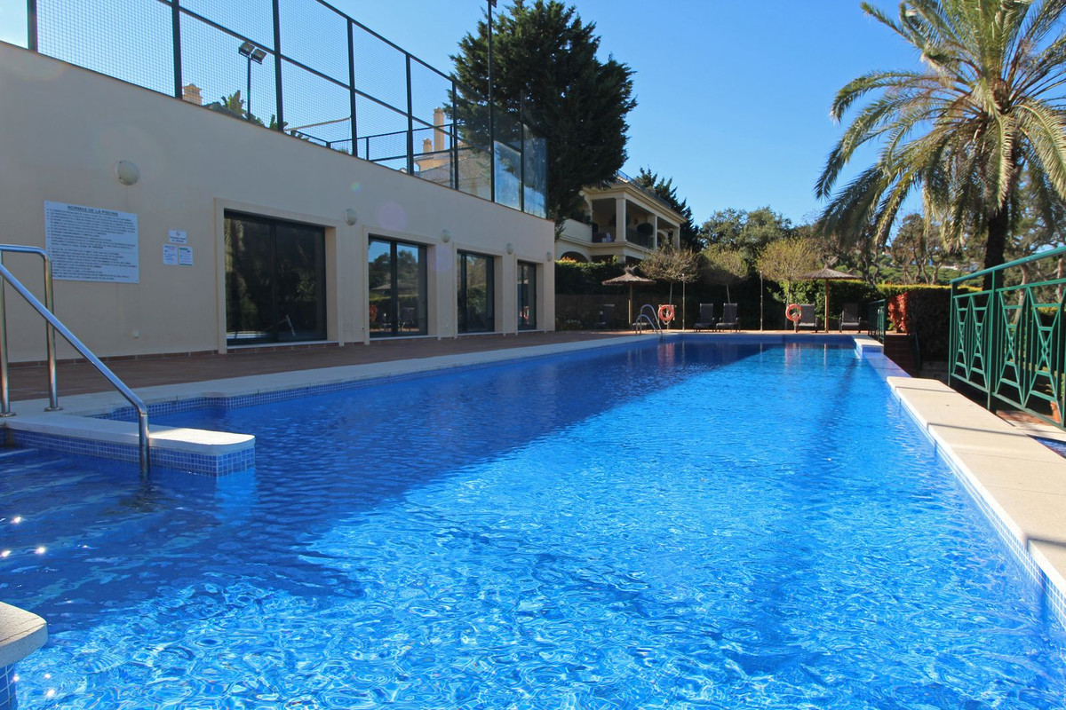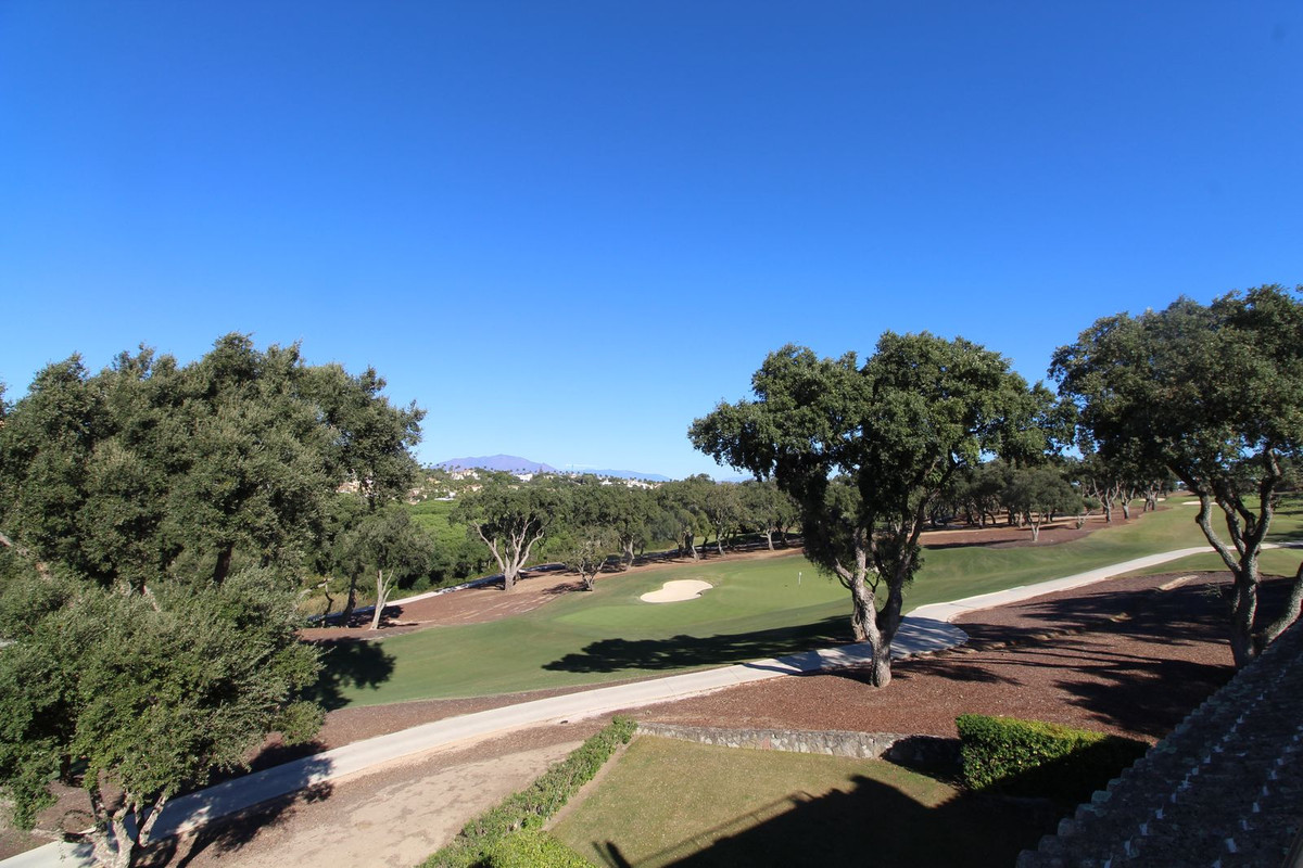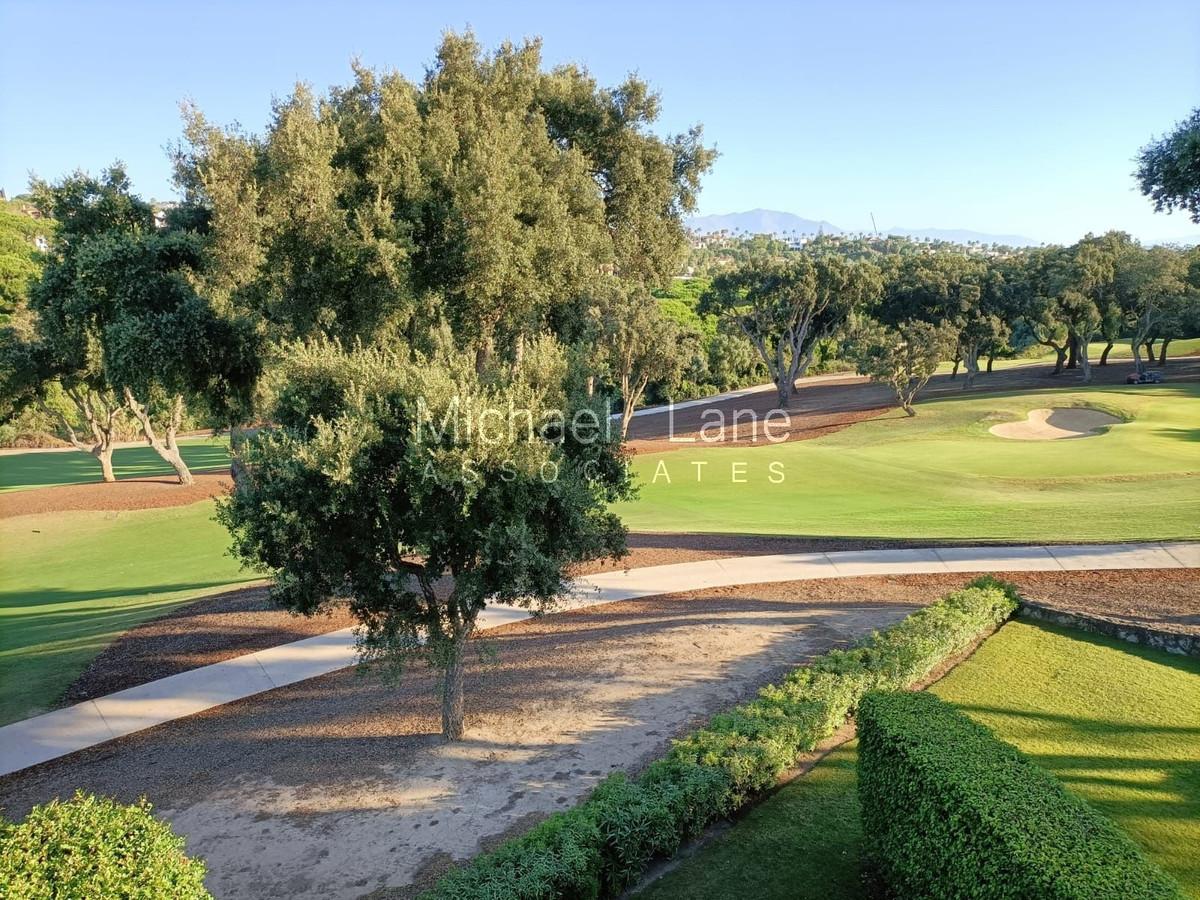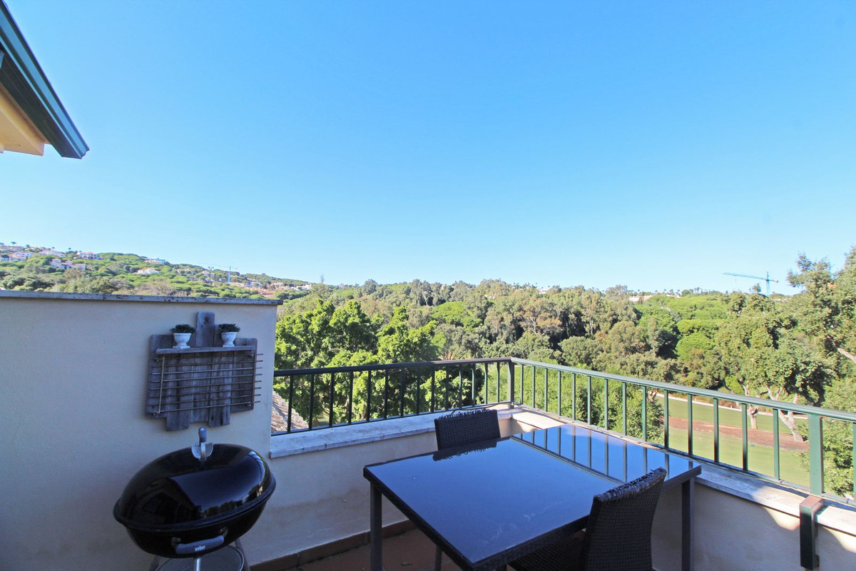 Experience the refined lifestyle at San Roque Club with this beautiful 2-bedroom, 2-bathroom penthouse, positioned frontline to the golf course. The expansive living and dining area features a cozy fireplace, a vaulted ceiling, and large sliding doors that open to a spacious terrace with panoramic views over the prestigious Old Course.